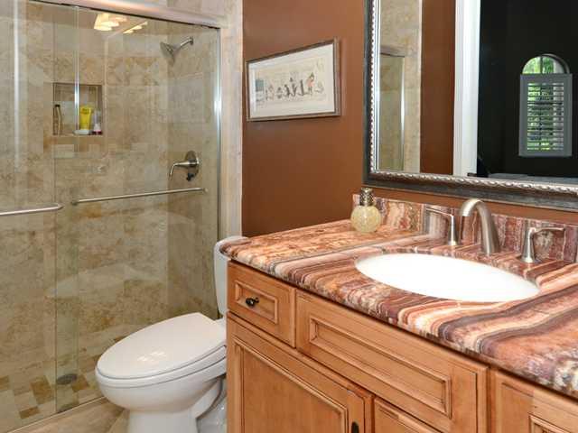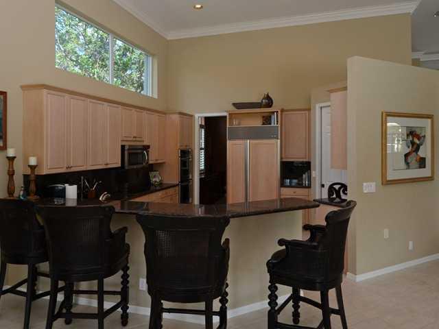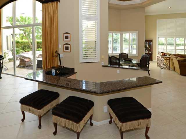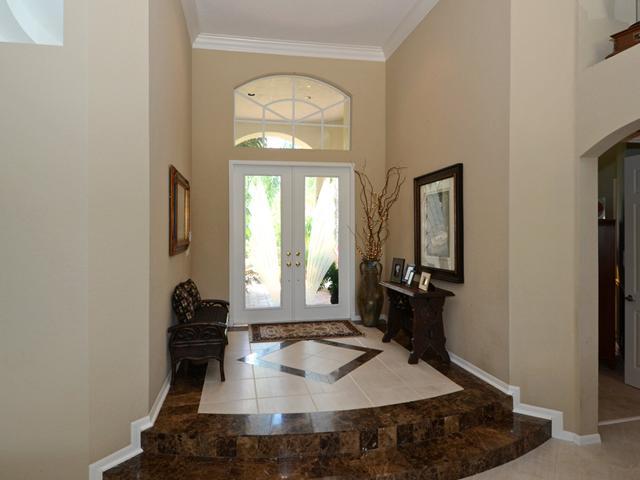 Double door glass etched entry doors*formal double step down foyer*crown molding*step down wet bar*laundry room w sink & cabinets*kitchen with 42" cabinets,granite,double wall oven,built-in microwave,subzero,desk area,walk-in pantry,salt chlorenator heat ed pool/spa recently redone as well as marble travertine decking*color changing halogen lighting in pool*accordion &paneled shutters as well as film protection*2 a/c's, air handlers replaced 3 years ago*wood in master bedroom, his & her master baths