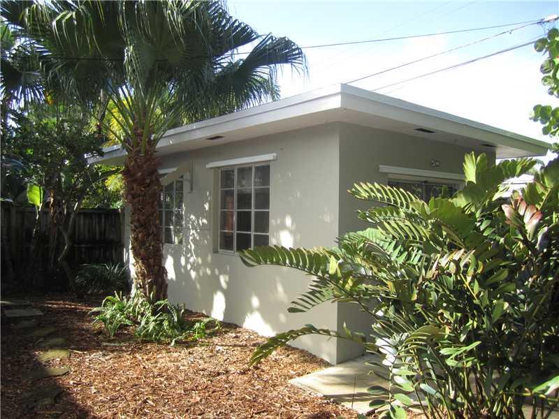 Beautiful Poinsettia Heights home with expansive open living room/dining room with French doors looking out to yard. Updated kitchen with custom cabinets, granite countertops and lighting. Tile floors in the main living area, laminate wood floors in bedro oms. Upgraded bathroom with granite. 2nd bedroom opened up to master, can easily be converted back. Beautiful yard with decking, Jacuzzi, and tropical landscaping. Separate detached studio. Roof replaced in 2005. Exterior freshly painted.