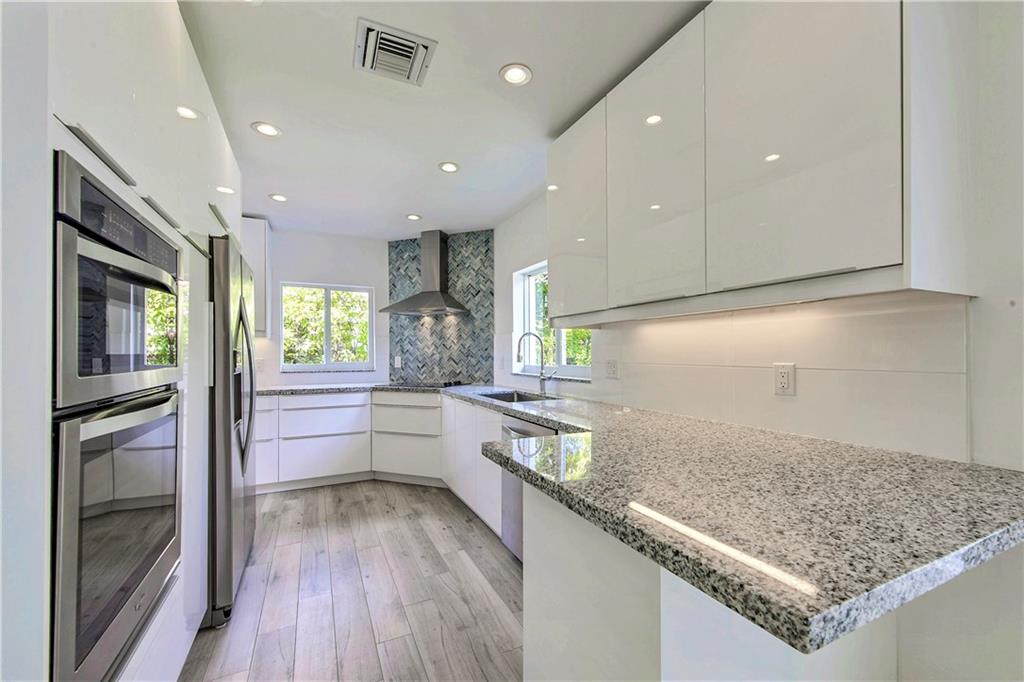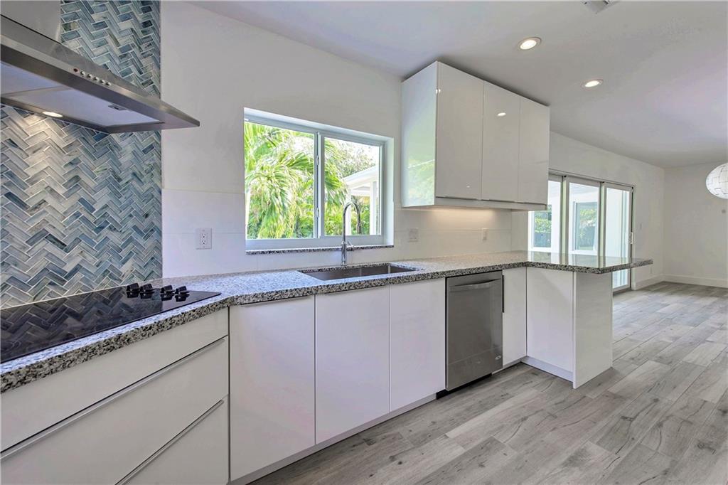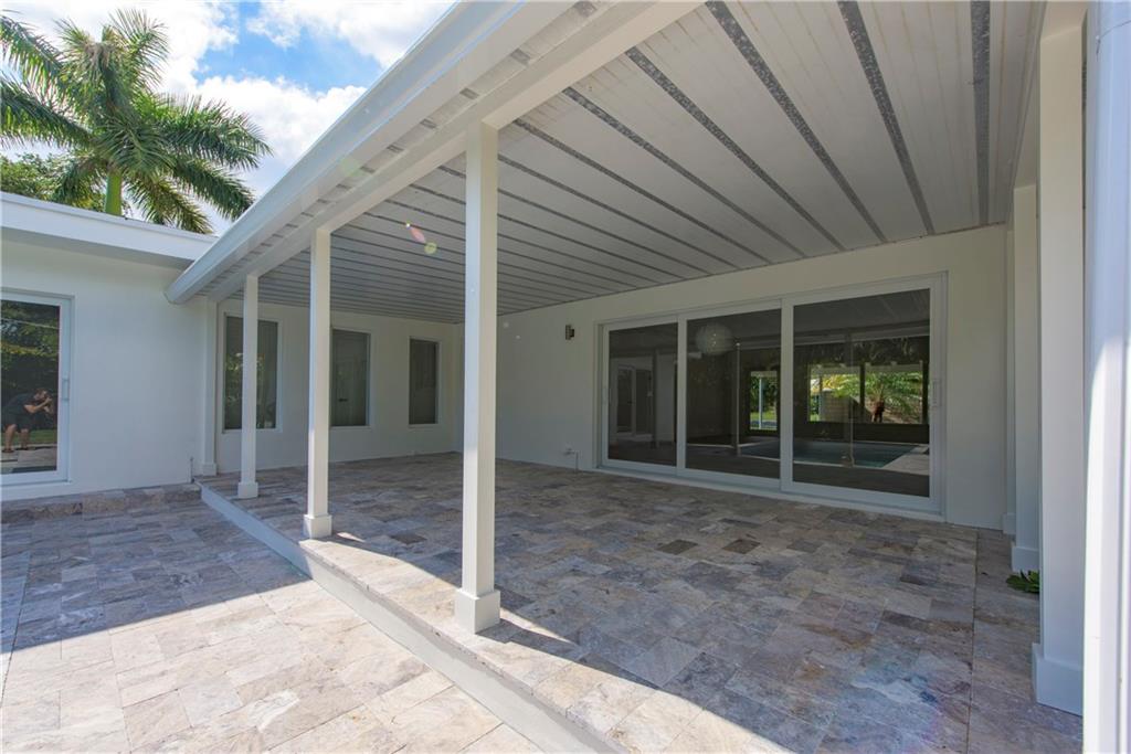 Completely re-built and updated! Newly imagined with refreshing contemporary finishes, porcelain wood tile floors, white finished cabinetry, Granite and Quartz tops, recessed lighting and premium fixtures throughout. Both dining and master open out to a spacious covered terrace that overlooks a new pool and private, well landscaped yard. The open Great room has wood burning fireplace and media wall with custom built-ins. New tile roof, whole house impact windows circular drive and covered parking