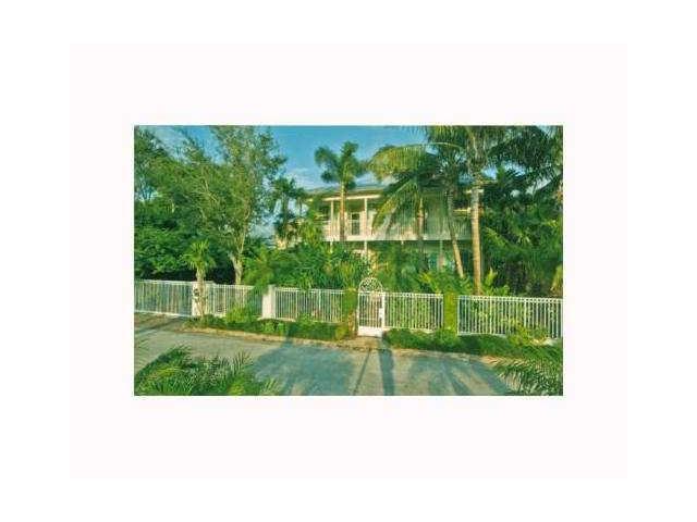 2 Story Key West Style home with 75 ft waterfront, front porch, marble floors, 1st floor office with built in desk and shelving, top of line kitchen with granite, lg family room, upstairs bedrooms with terraces and all with own bath, master br with custon closet, steam shower, whirpool tub, separate vanities, surround sound throughout house, beautiful pool and spa, lush tropical landscaping, 2 car detached garage with upstairs studio, full bath, and kitchenette, Chicago pavered drive. Needs some TLC.