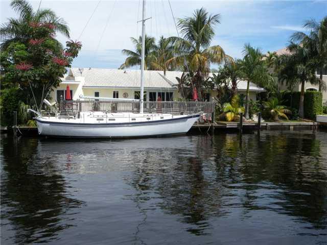 Classic deepwater residence on one of the Country Club's finest isles. Open great room, living room, dining area.Split bedroom with large master & updated bathroom. Three bedrooms, two bathrooms create separate wing to residence.Light & bright throughout. Hurricane proof windows.Brazilian cherry wood floors in all bedrooms. Kitchen & secondary baths need renovation.South facing backyard. Quick closing available.