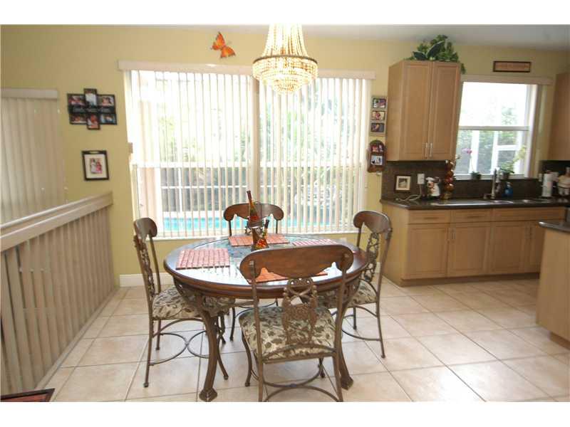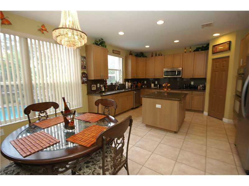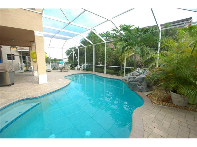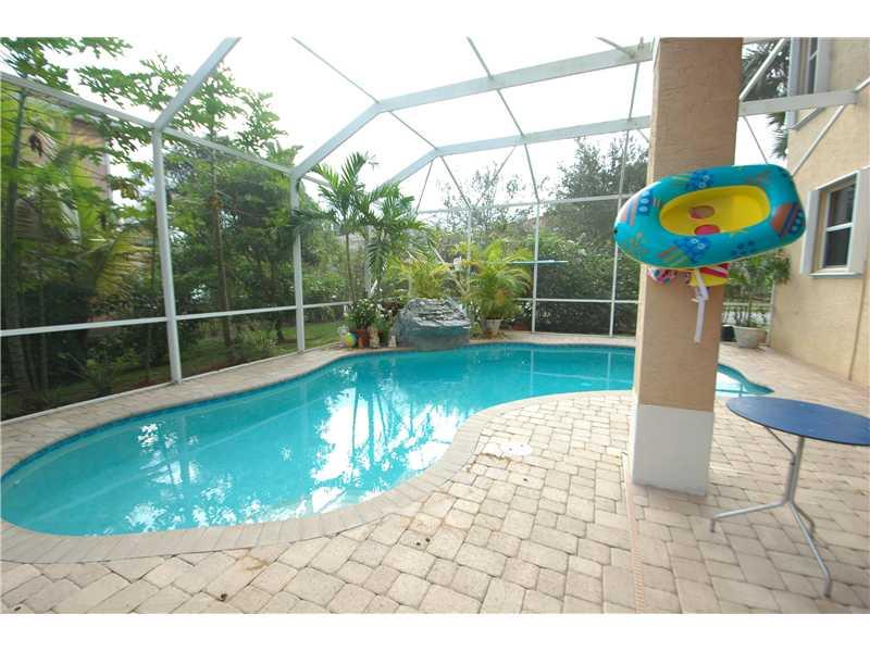 GORGEOUS 2-STORY HOME WITH TOP-OF-THE-LINE ACCORDION SHUTTERS. LARGE POOL WITH WATERFALL, SCREENED ENCLOSURE AROUND POOL AND PATIO. GOURMET KITCHEN WITH CENTER ISLAND, STAINLESS STEEL APPLIANCES, GRANITE COUNTERTOPS. UPPER LEVEL HAS ALL NEW PORCELAIN FLOO RS, STAIRS HAVE MARBLE.