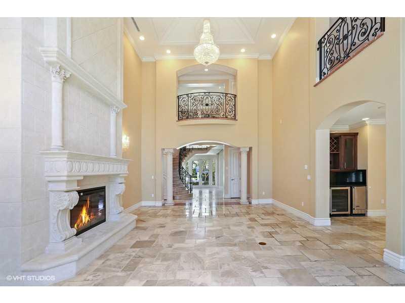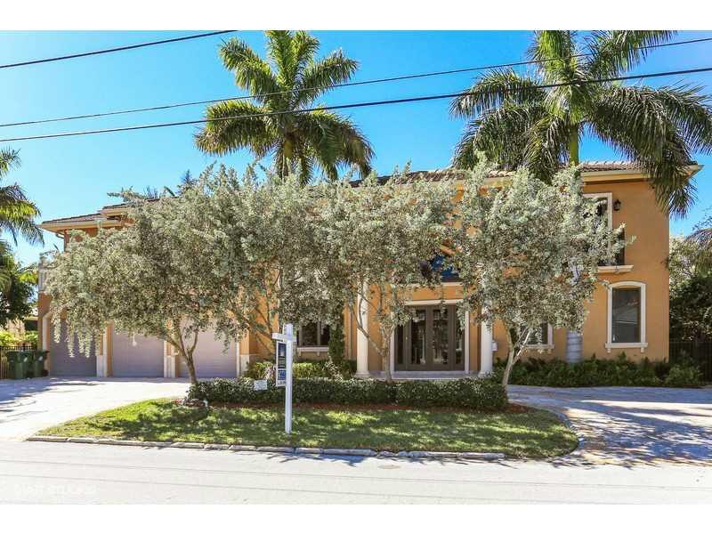 Lovely Mediterranean home 100' w/f, will fit 80' yacht. Elegant foyer, flowing staircase & marble medallion floor design. Venetian plaster on walls & ceilings, stone fireplace, polished marble floors, gourmet gas cooking kitchen, custom iron work, solid wood doors & hydraulic elevator. Bedroom with lighted tray ceilings, indirect lighting, home theater w/acoustic ceiling. Brazilian cherry floor in some rooms, designer fixtures throughout, double shower in master. Great location! $50K upgrade allowance!