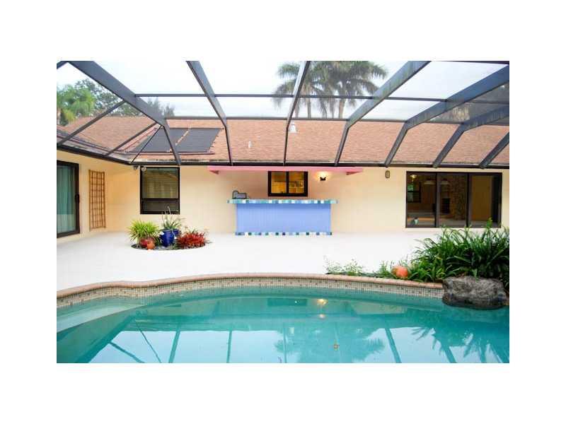 Wide open floor plan w/ vaulted family room w/stone fireplace complement the open air living highlighted by a 2420 ft enclosure featuring custom tile bar, lush tropical pool&spa.Your 880 ft Master Suite also opens to this paradise. Efficient sub-zero,Bos ch,Viking appl make cooking a joy Solar Heated Hot Water and Pool. Premium Hi Impact Windows/ Doors provide insulation&safety. See Attachement Flood insurance not req. -Profess Landscaped- Home Warranty. Priced under market & waiting for the right buyer