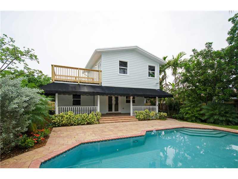 Newly renovated, updated and rebuilt! Reminiscent of Key West just blocks to Las Olas. New impact windows and doors, a contemporary, open kitchen with breakfast bar, vaulted beamed ceilings, hardwood floors and a wood burning fireplace. Private 2nd floor master has a spacious master bath with roman tub, beamed, vaulted ceilings and an inviting porch. Two ground floor bedrooms share an updated bath and a powder room is just off the room-sized foyer. Huge covered back porch overlooks private yard & pool.