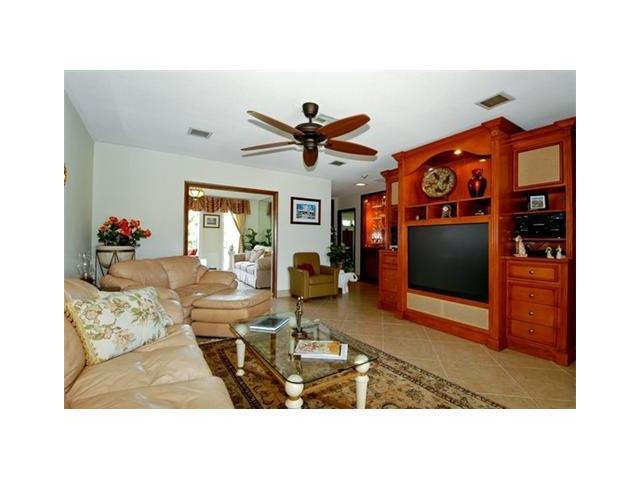 Spacious home in desirable Santa Barbara Shores, big 10,000 sqft lot on wide waterway perfect for large boat. Two-level dock w/ water & electric. Home equipped w/ 45kw Generac generator, hurricane shutters, heated pool. Split bedroom plan,nice sized maste r w/french doors, waterview, 3 closets, adjoining office & beautiful custom bath. Gorgeous back patio & pool, ideal for enjoying the outdoor Florida lifestyle - covered wet bar, outdoor dining area, spa, pavers everywhere & great water views.