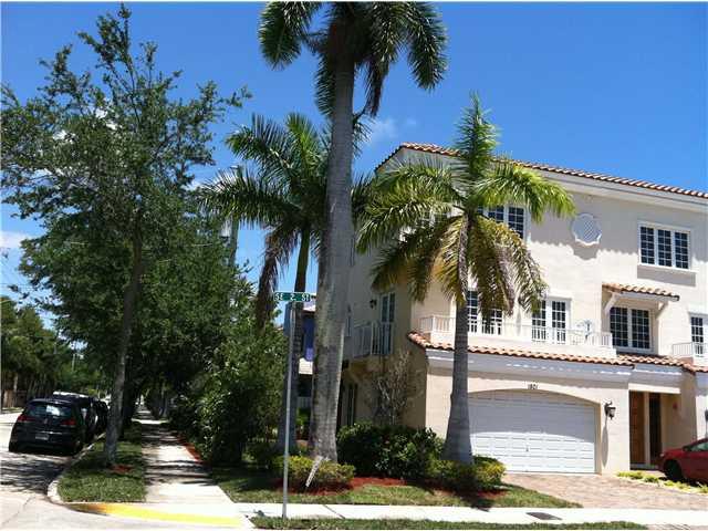 Tri-level Mediterranean style townhome 3/3 w/2 half baths . This sun drenched corner unit features an elevator, gourmet kitchen w/stainless appliances, gas range & granite countertops, tray ceilings, tankless water heater, skylight, crown molding, central vac and numerous balconies. Family rm features a wetbar w/fridge & bev ctr. All bedrooms have their own full bath & great closet space. Fee simple, no homeowners assoc or maintenance fees! 2 short blocks off Las Olas, in downtown & close to the beach.
