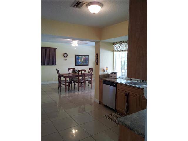 Remodeled home Move-in ready! Spacious 3 bedroom 2 bath home with georgous tile throughout. Single garage is also tiled. Newer A/C 2009, new Flat Roof 2012, New hurricane panels and accordion shutters. Remodeled kitchen and bathrooms. Amazing back porch & patio. Alarm System. Great opportunity in Hollywood Hills. Don't wait!