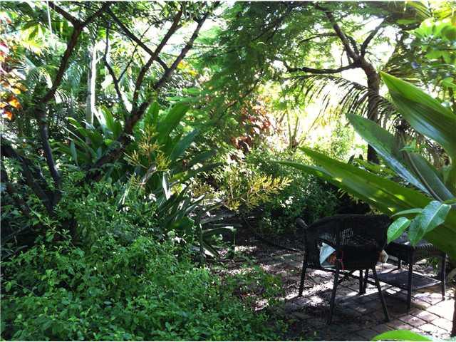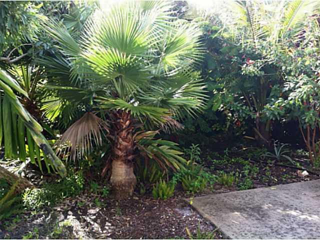 2nd Bedroom off Master, convert back by adding doorway to hall. Custom kitchen w/granite counters, Stainless Steel Appliances, smooth-top range, Advantium Microwave/speed cook, built-in refrig, Pass-thru to Din. Rm, Black Slate and Marble bath with custom medicine cabinets. Designer touches throughout, Dental Crown Moldings & tall baseboards, One-car detached garage has been converted to artist's studio with A/C but no plumbing, Garden pathway to tropical retreat, Newer Awning windows but not impact,