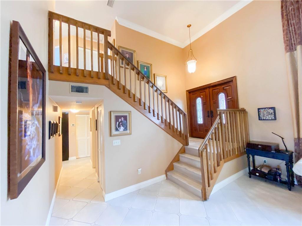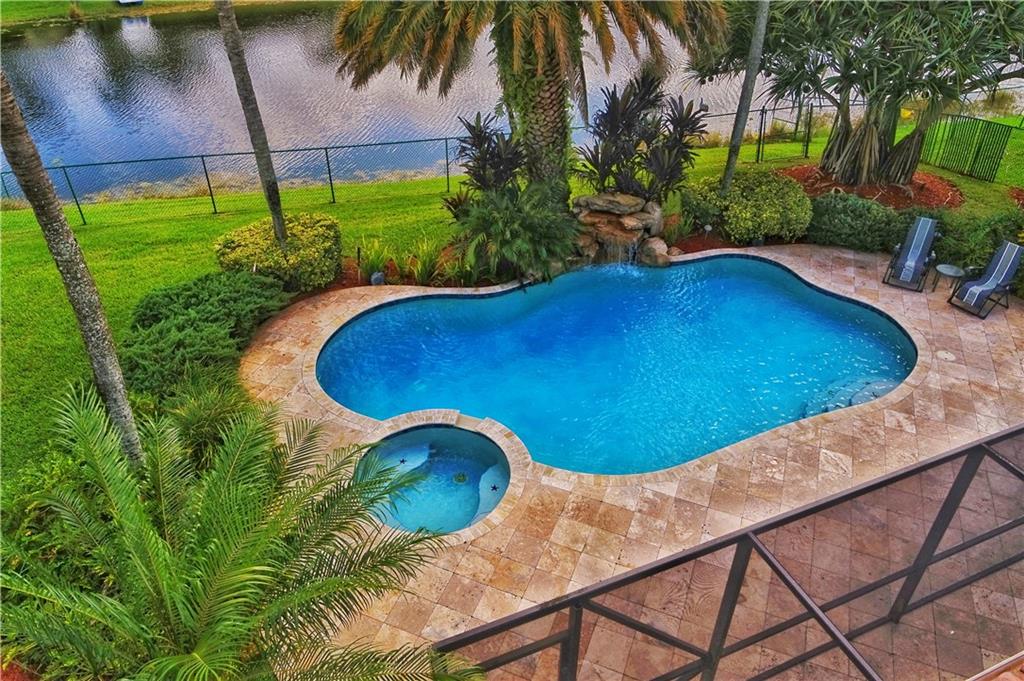 Spacious and updated Hawkes Bluff of Ivanhoe, 2 story lake front located in desirable Culdesac. This well maintained move in ready 4 /3.5 with 2 car garage, features tastefully updated flooring, freshly painted, knock down ceilings, bedrooms with custom built in closets, custom window treatments, high end lighting, family room with built in entertainment center wired for surround sound, impact windows and sliding doors, updated kitchen with granite counters, island, eat in counter, double ovens and a lot of storage, large laundry room, 2 a/c zones. Enjoy entertaining outside in this Tropical Oasis with lake view, custom landscaping with lights, screened porch, heated salt pool with waterfall rocks and spa, travertine patio, and outdoor speakers. Many more upgrades throughout the house.