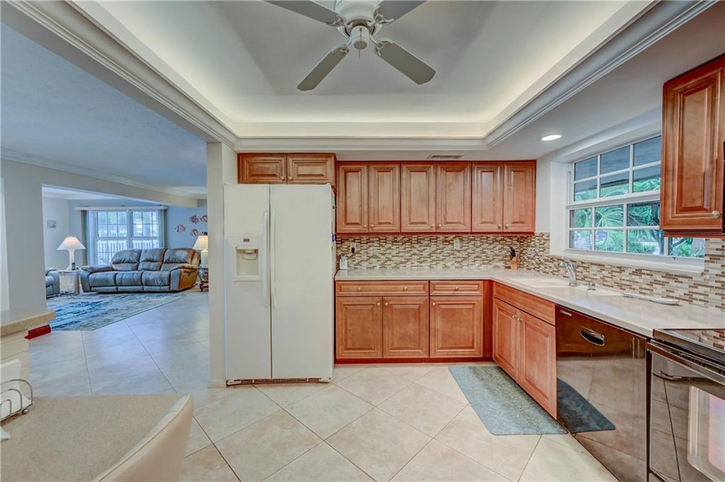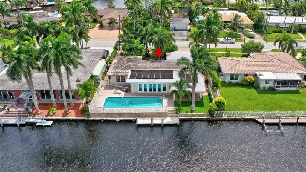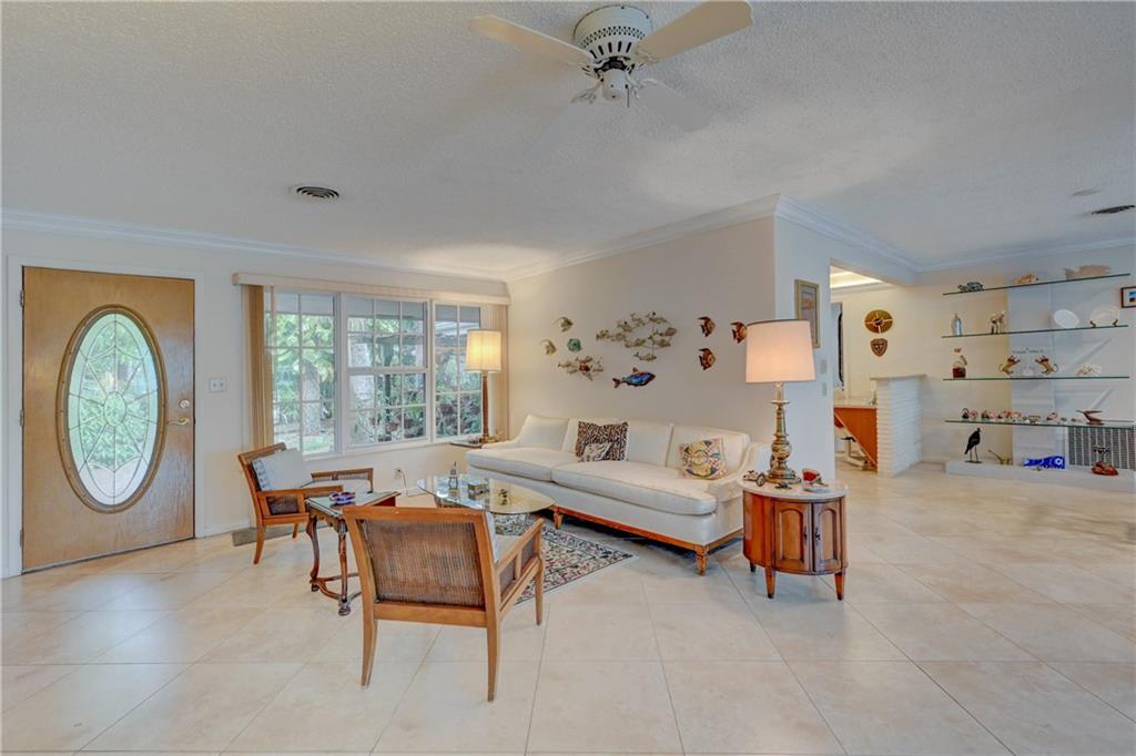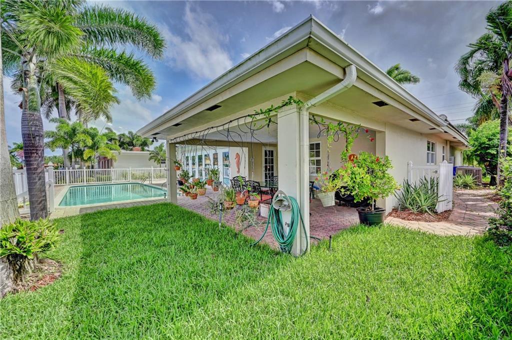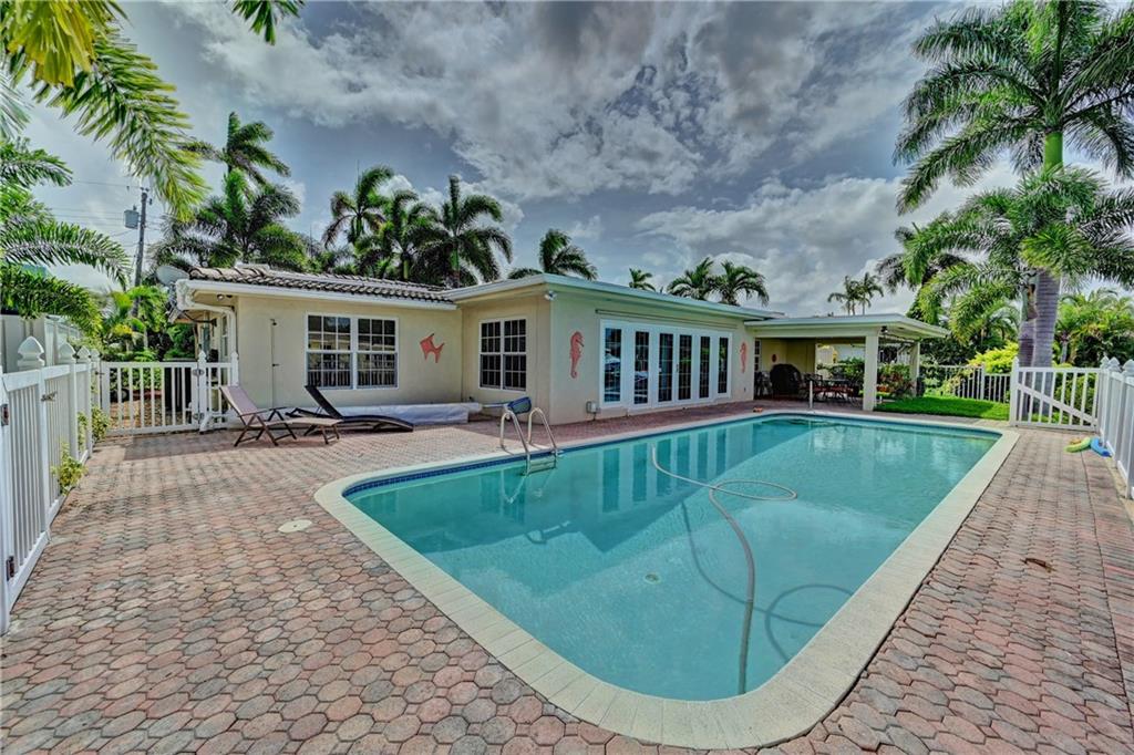 Updated 3 bedroom 2 bathroom waterfront pool home with only the Federal Highway bridge. Open floor plan, spilt bedrooms, hurricane impact windows, 2 car garage. Updated kitchen and bathrooms. Tropical landscaping with fruit trees and heated pool located on a dead end street. New Ac and updated electrical. Park your boat in your backyard and take a short cruise out to the intracoastal and ocean. Plenty of closet space, pantry and storage. Master bedroom has an office nook. Crown moldings and baseboards.