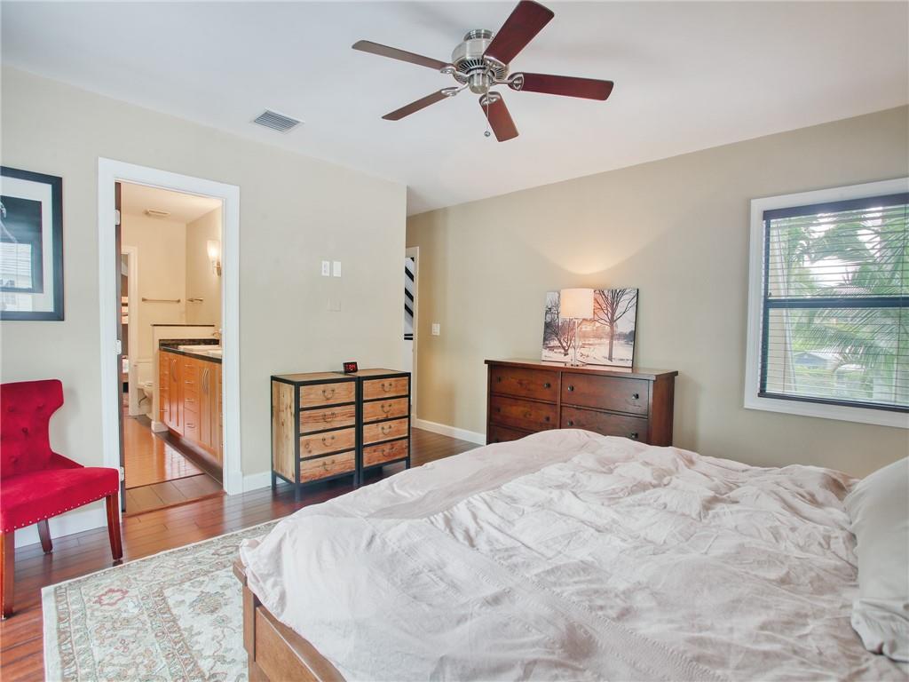 Superbly located on one of the most desirable tree lined streets in Fort Lauderdale. Voluminous wood beam ceilings, that are accented by clerestory and skylight windows, draw your eyes upward. Open kitchen with cherry hardwood cabinets, granite counters and stainless steel appliances is where family and guests will congregate while you prepare gourmet meals on your induction range. Master suite with adjoining sitting area is conveniently located on the first floor and has it's own private entrance...ideal for an in-law suite. Perfectly neutral tile laid in a diagonal on first floor and Brazilian cherry hardwood flooring on the second; all tied together with cherry stained hardwood interior doors throughout. Bonus loft area can be used as an office or den. Hurry, this one won't last!