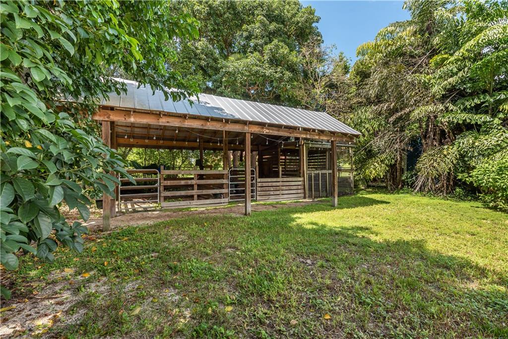 Here is a great home in a quiet neighborhood with A rated schools for a great price! This home features 3 bedrooms and a tastefully done bathroom. The kitchen boasts stainless steel appliances, hardwood cabinets, and leathered granite countertops. Open concept living room and kitchen with a good sized dining room. This home has impact windows and doors and a roof being installed soon. Plenty of room to stretch out with a 1 acre lot with tons of tropical fruit trees. An additional 1500 sqft building with a media lounge and guest quarters makes this property 1 of a kind. A 3 stall horse barn with attached chicken coop. Come see this home today as it will not last long!