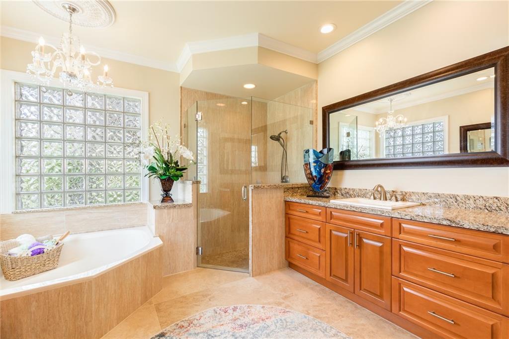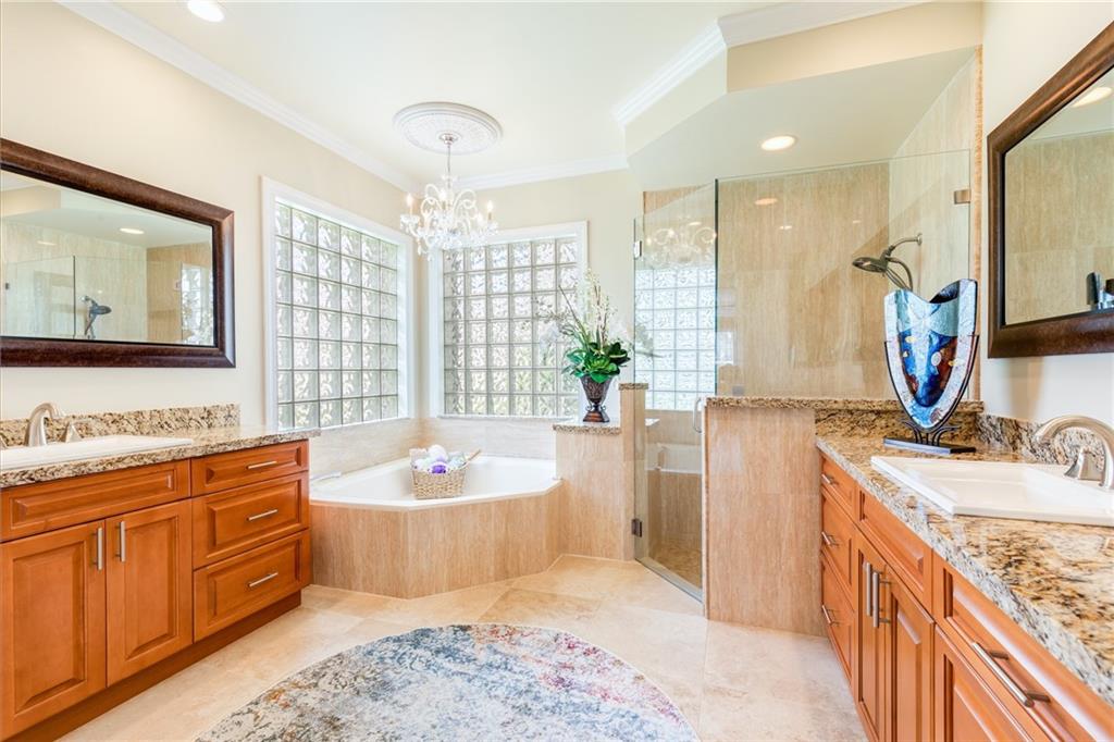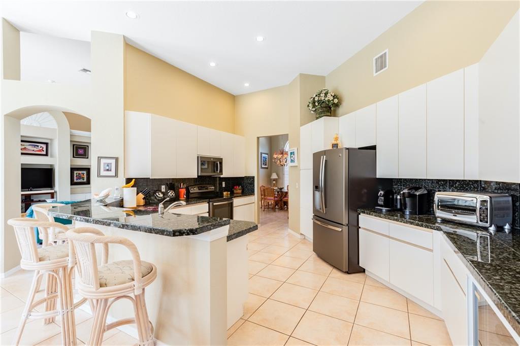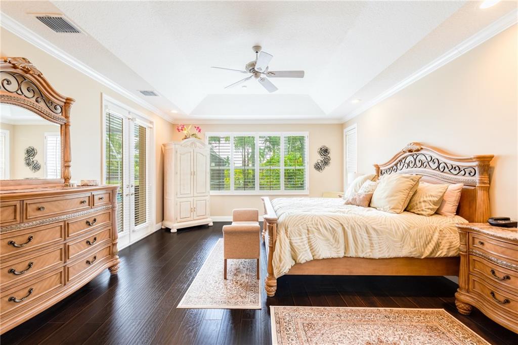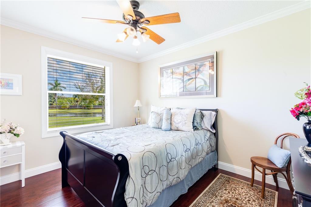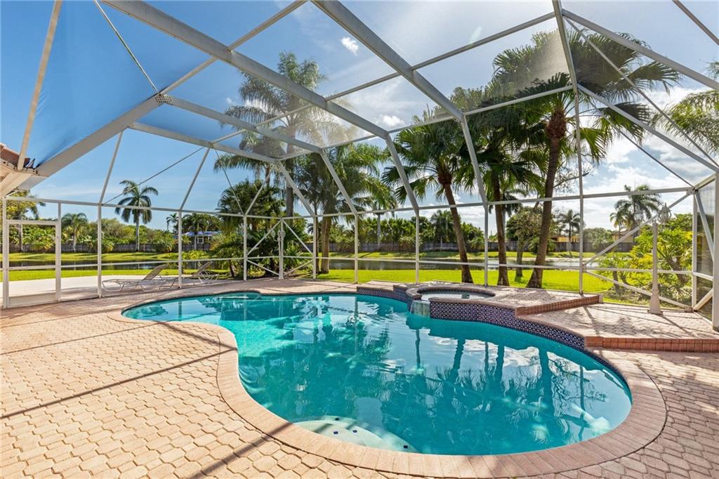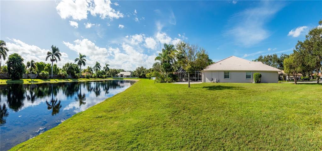 Large 1/2 acre wide waterfront homesite on a private Cul De Sac street. 5 Bedroom 3 1/2 split layout w screened pool, 3 car garage and estate style layout. Dramatic volume ceilings, large formal dining, living & family rooms. Huge eat-in kitchen café nook overlooks pool, patio,wide rear grounds and waterfront. Very spacious Master Suite and Bath with water & pool vistas. Tiled in the main living areas, new flooring in the bedrooms, updated baths w newer granite, cabinets and tile flooring. Recent exterior paint and landscape refresh. Great gated community with low HOA, tot lot and tennis court. Walk or bike to A rated elementary. Top rated middle and high school as well. Gated community, convenient to everywhere but in a secluded setting. Well maintained by original owners.