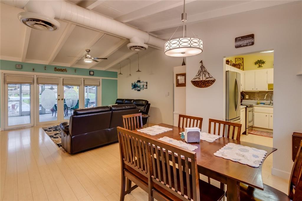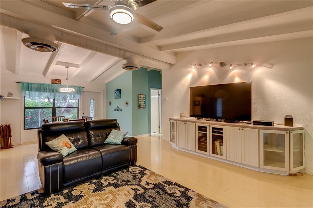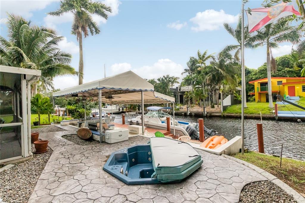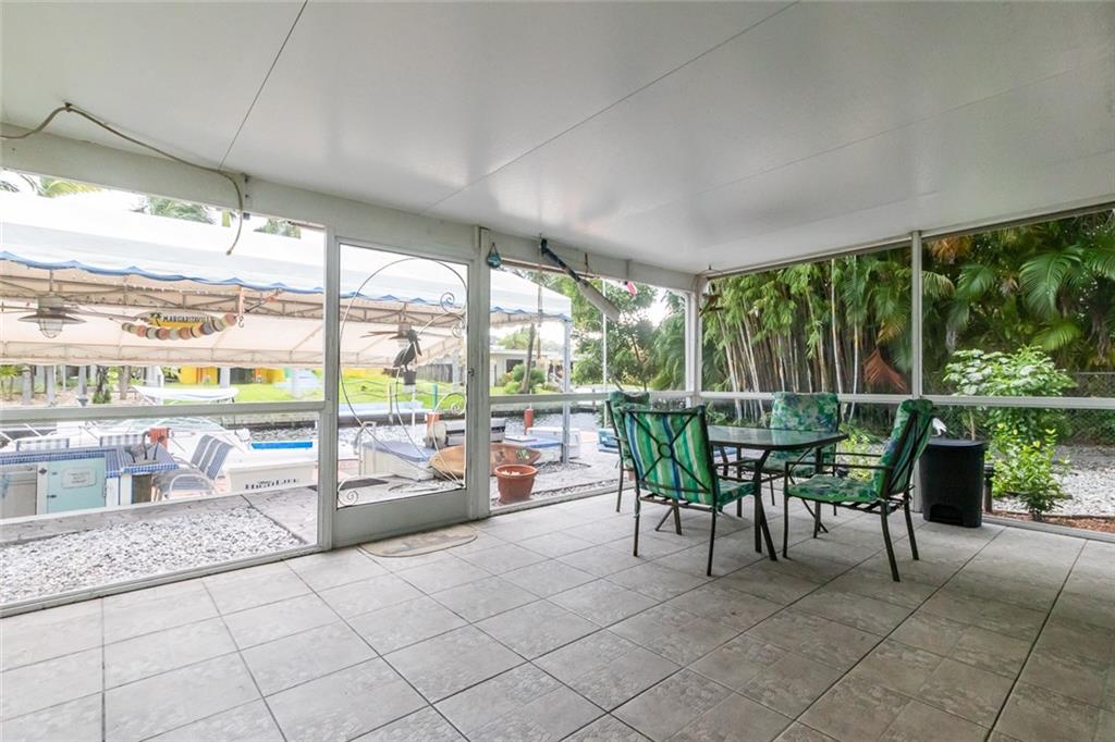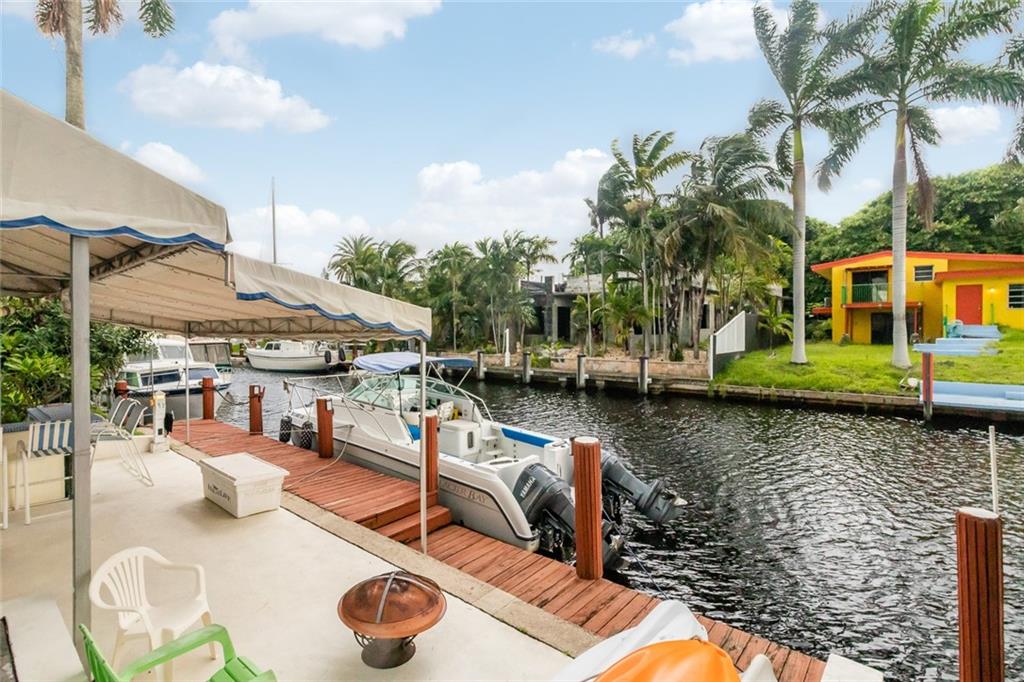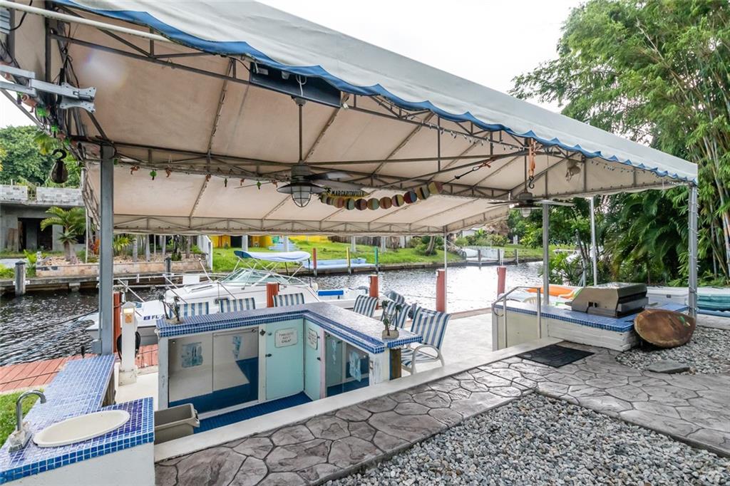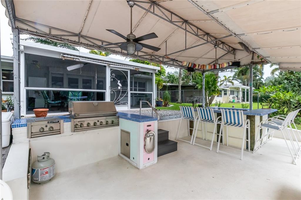 3/2 w/ 1 Car Garage and HUGE outdoor dockside kitchen / bar / entertaining space DIRECT OCEAN ACCESS WITH NO FIXED BRIDGES (except 95 at more than 50ft of clearance) 65ft of Deep water and 50 ft of dock. Exposed Beamed ceilings give this home a bright and spacious feel. Stainless steel appliances. Nicely updated bathrooms & laminate flooring. Indoor laundry room with extra storage space. Large screened in patio and outdoor entertaining spot! Dockside Bar is Complete with electricity, full kitchen, grill & refrigerator. Lauderdale Isles also has a community boat ramp for easy maintenance, and taking boat in/out. Accordion Shutters Throughout the home.