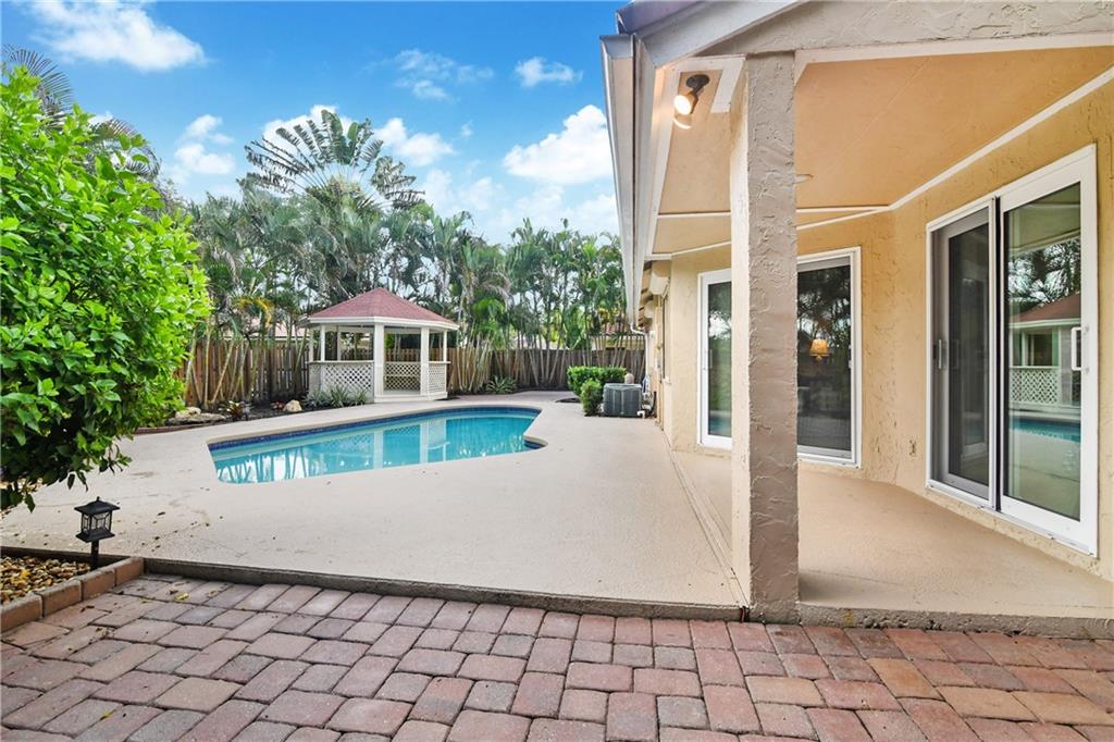 AN OASIS OF A BACKYARD AWAITS YOU IN THIS ONE STORY IMPECABLY MAINTAINED HOME. BEAUTIFUL BELOW GROUND POOL, GAZEBO, PAVERED BACKYARD, COVERED PORCH AND LUSH GARDEN. THE PERFECT BALANCE BETWEEN SHADE AND SUN FOR FAMILY FUN AND BARBEQUES! THIS 3 BEDROOM HOME IS BRIGHT AND SUNNY. TILE THROUGHOUT THE LIVING AREA AND LAMINATE IN THE BEDROOMS.EACH BATHROOM HAS BEEN METICULOUSLY REDONE. IMPACT GLASS WINDOWS AND DOORS FOR EASY LIVING. VAULTED CEIILING WITH CROWN MOLDING IN THE MAIN LIVING AREA.ONE CAR GARAGE. BRING YOUR TOOTHBRUSH! CLOSE TO SAWGRASS MILLS, ALL HIGHWAYS AND AIRPORTS. WESTON TOWN CENTER IS A MUST TO ENJOY!