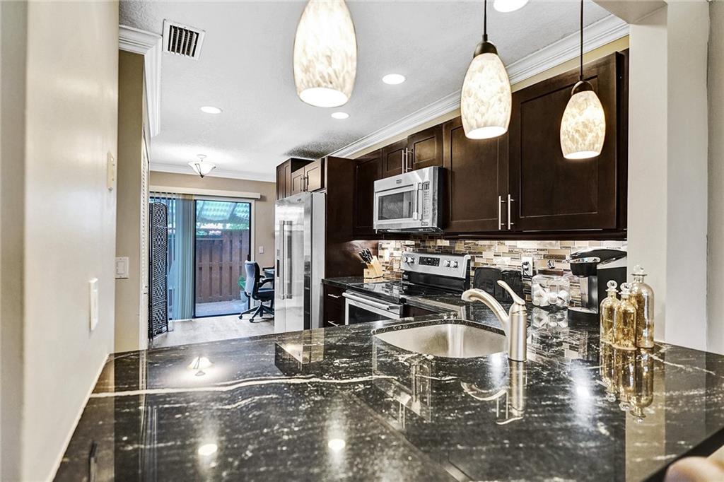 PRIME LOCATION: 1 Mile from the beach. 2 BR 1.5 BA Move-in ready Townhome!! Completely Renovated from floor to ceiling with top of the line fixtures and appliances included. Impressive kitchen with granite counter-tops, stainless steel appliances, gorgeous wood cabinets, NEW water heater and well-maintained AC. Volume ceilings, front and rear porch, All new laminate floors, beautiful master bedroom with new wood balcony and walk-in closet. New skylight .LOW Association fees, common area maintenance and pest control included. Easy to show. Association approval required (2-3 weeks) 1 Year Rental Restriction. 1 pet allowed under 30 lbs.