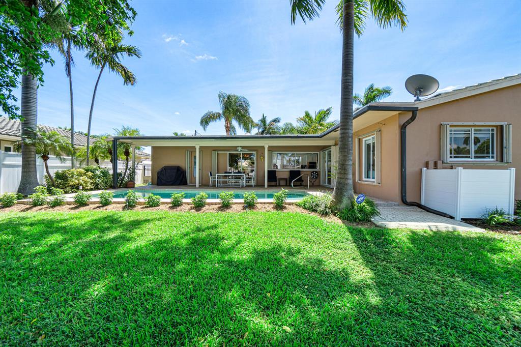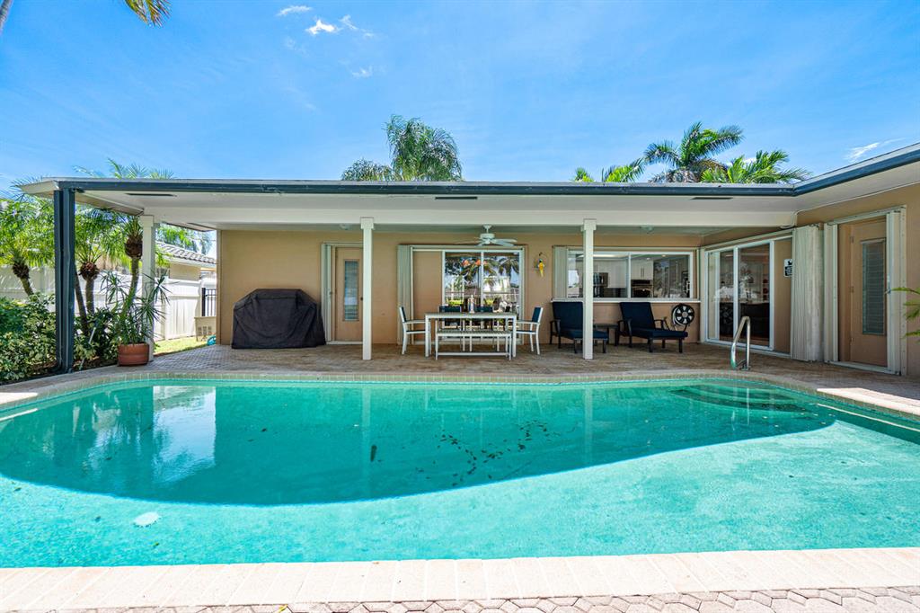 Desirable Harbor Village in Pompano Beach. This deep water pool home offering 80' of waterfront with upgraded seawall is set on the best street in this flourishing area. Direct ocean access. Bring the whole family, with 4 bedrooms, 3 baths, 2 car garage and great living space, inside and out. Traditional Florida home is designed for entertaining, featuring a generous covered back patio that extends the home and meets the sun soaked pool and patio. Updates made to the kitchen, baths and flooring round out the property. Full accordion shutters. Fully fenced yard w/ lush landscaping. Convenient circular drive welcomes you home. Just 4 lots from the Intracoastal and minutes from the Hillsboro Inlet by boat, this is truly a boater's refuge. No HOA. Gas generator & water heater.