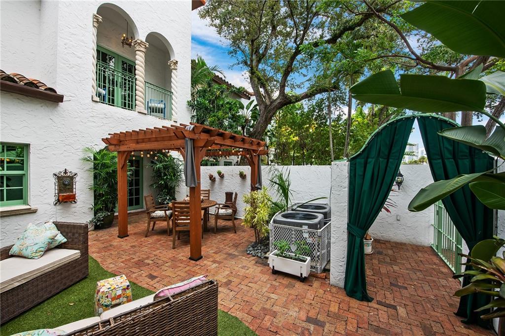 Rare opportunity to own one of nine townhomes located in the coveted Sheppard Estate atop Fort Lauderdale's highest point-18 feet above sea level. Beautifully refinished 3 bedrooms, 2.5 baths with 2 car garage in gated wall community. Features include high impact windows and doors, dark walnut hardwood floors throughout, gourmet kitchen opening out to the living room that offers a gas cooktop, double oven, wine cooler, and kitchen island with custom wood cabinetry and granite countertops.Master suite has a large terrace with retractable awning. Front courtyard entry with pet-friendly artificial turf, custom pergola, exterior lighting, and plenty of room for entertaining. Newer roof installed 2017, new tankless gas water heater & 2 new A/C units. Short walk to shops, restaurants, and beach.
