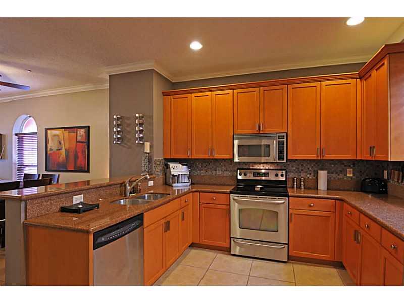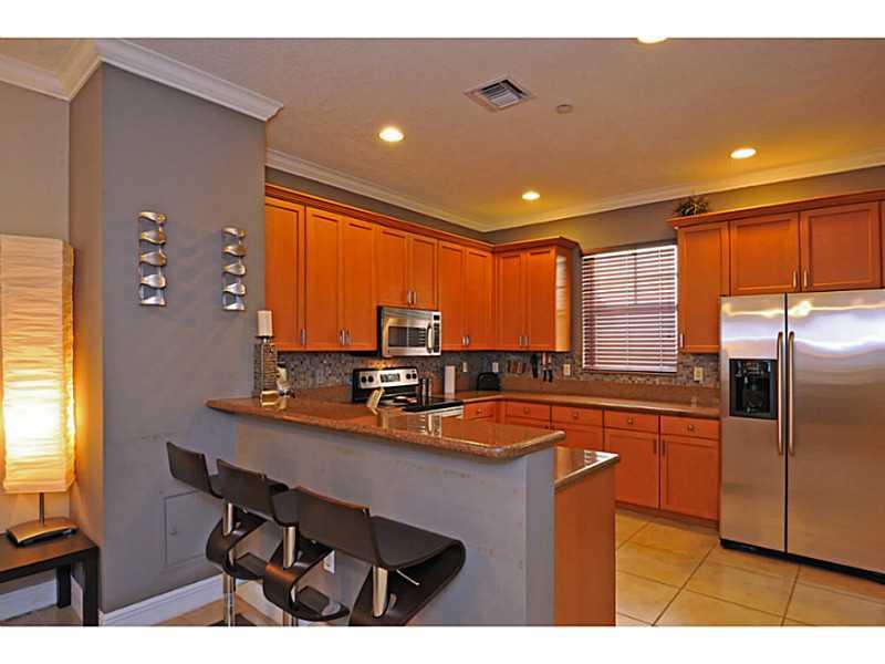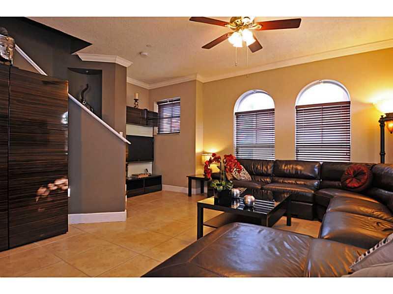 Stunning CORNER unit with huge private ROOF TOP TERRACE (approx 15X35) and many upgrades.Gated complex with pool right in front of the unit. Amazing living space with lots of room. Kitchen with beautiful wood cabinets & granite counter top. Stainless stee l appliances and full size, top of the line washer & dryer located in its own laundry room off the kitchen. Double car garage. Tile troughout. NO CARPET in this unit. Impact glass windows throughout. Very tastefully done, nothing to do.