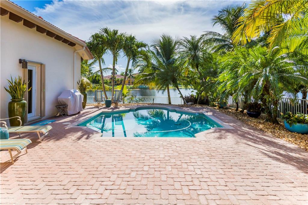 BEAUTIFUL ONE STORY HOME WITH BOTH POOL & LAKE IN THE RESORT STYLE COMMUNITY OF SUNSET LAKES! THIS HOME FEATURES FIVE BEDROOMS, THREE FULL BATHROOMS AND A BUILT-IN OFFICE AREA. THE OPEN KITCHEN IS UPGRADED WITH QUARTZ COUNTERTOPS & NEWLY FINISHED CABINETRY. THE BACKYARD IS THE PERFECT PLACE TO RELAX WITH AN AUTOMATIC SCREENED PATIO, BEAUTIFUL POOL AND PEACEFUL LAKE. THIS HOME IS PROTECTED BY ACCORDION SHUTTERS AND SECURITY CAMERAS.