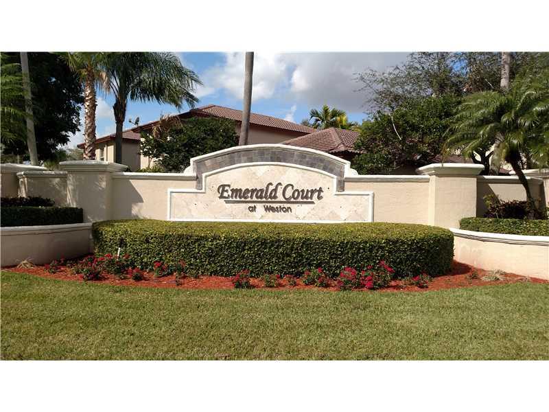 Charming 2 bed/2.5 bath semi-attached home in Weston. Good condition, new kitchen upgrades, granite countertops, wood kitchen cabinets. Ceramic tile on 1st floor; Laminate flooring on stairs, upstairs hallway and bedrooms. Each bedroom has its own bath room and walk-in closet! A/C replaced in 2012. HOA fee includes outdoor landscaping, painting, pressure cleaning, 24hr guarded community gate. Desirable Weston schools, Everglades Elementary, Falcon Cove Middle School and Cypress Bay HS.