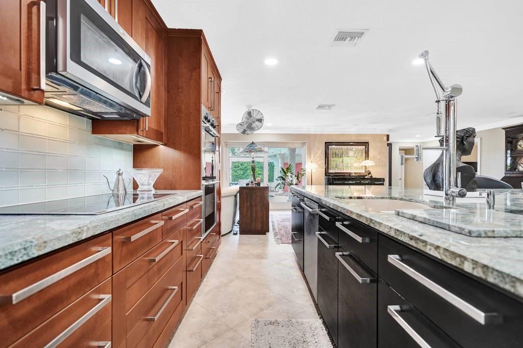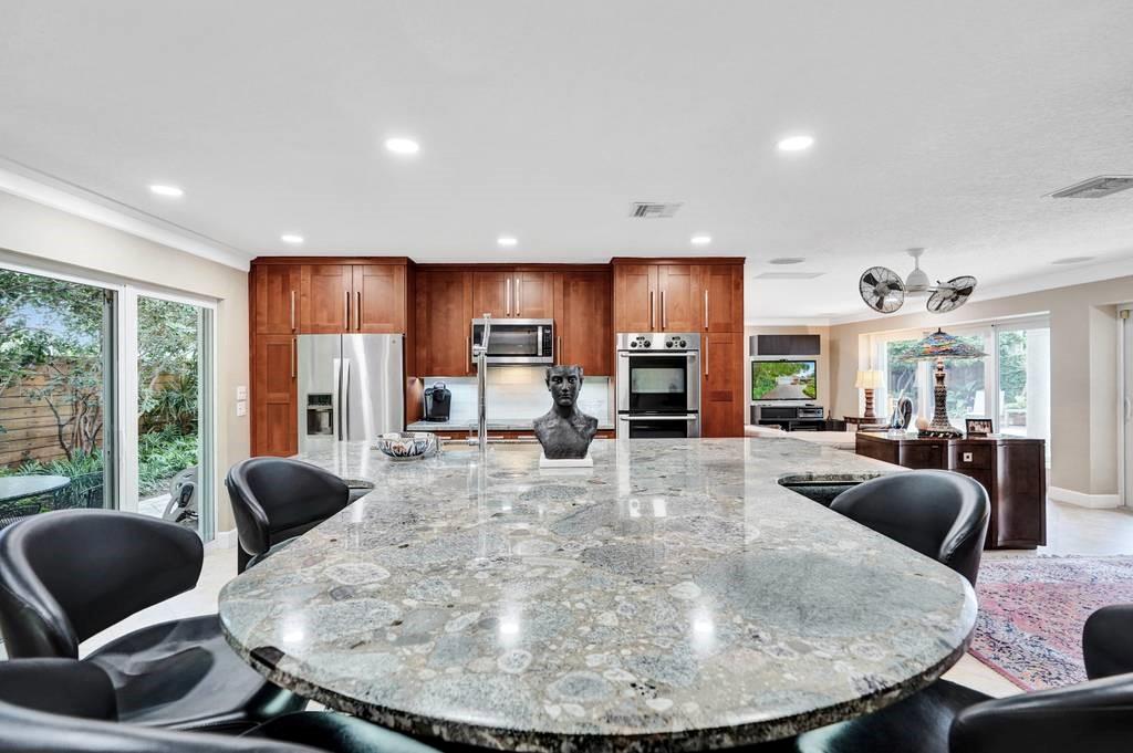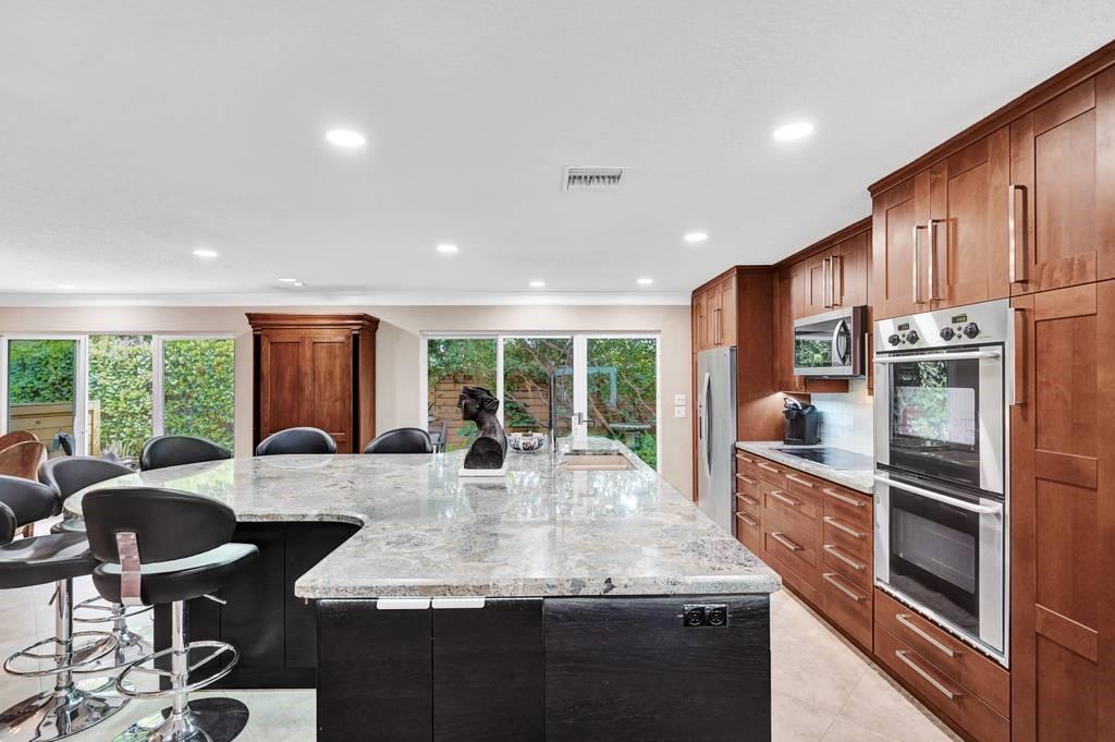 Entertainers dream home. This one has it all! Enter through a double doorway to your private oasis. You are greeted by a gorgeous pool and patio space that is surrounded by lush landscape and meandering pathways around the property. Huge glass doors everywhere bring the outdoors in, to make this one a special home for gatherings. Dramatic underlit kitchen island is the statement piece for the living space. This owner has spared nothing on finishes. Office space makes this great for working from home, plus you have the luxury of a fenced in outdoor shower. Hurricane impact windows and doors, plus a full house generator. Property located close to beaches, nightlife, great restaurants and Coral Ridge Country Club for the golf and tennis enthusiasts. There is nothing more you could want!