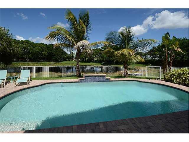 BEAUTIFUL Lake, Pool & Cul-de-sac home in The Falls features 4 bedrms, 2.5 bathrms,on an over-sized lot, w/lake access to over 3 miles of waterways w/great fishing- Extended pavered patio area has a heated pool w/waterfall & fenced yard. Kitchen has been upgraded w/wood cabinets & quartz counters. Master bath recentlty remodeled. Wood floors upstairs in all bedrooms, tile on ground floor. Washer & Dryer on 2nd floor. Alarm system w/motion detector. Walk to A+ Schools. Minutes to I-75 & I-595=easy commute