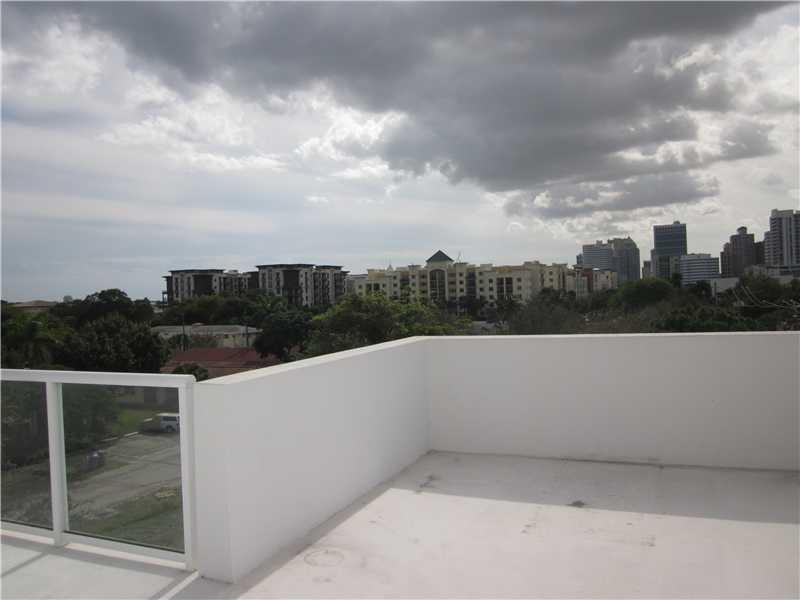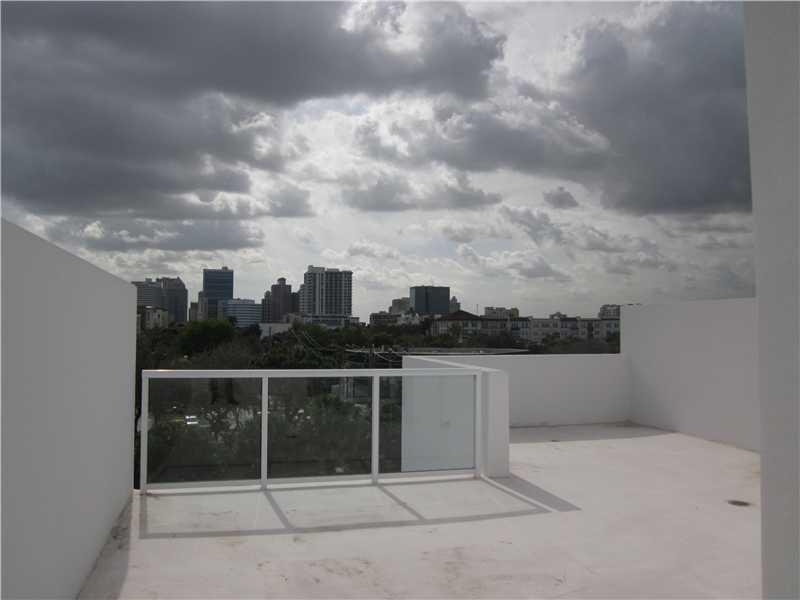 Great city skyline view! South facing unit of Bamboo Flats. Oversized two car garage, high ceilings throughout, big rooftop terrace wired for a hot tob. Downstairs can be used as an office, den or additional bedroom with full bath. Granite counters, SS a ppliances, impact glass windows. Close to shopping, dining, beach and night life.