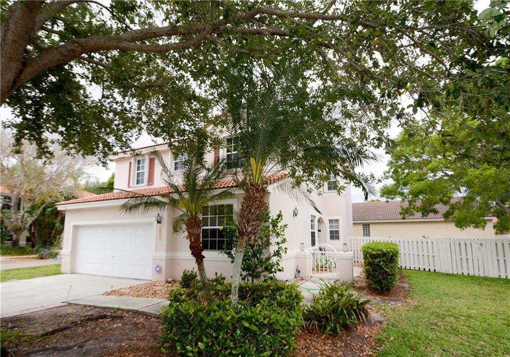 One of the largest fully fenced lots in the neighborhood! Lots of space to play! remarkable home with 3 bedrooms plus a den which some use as a 4th bedroom! Granite kitchen with maple cabinetry, separate laundry room, all bedrooms are upstairs. This home is fully hurricane protected! in a gated community located in the best school district with a community pool. Situated on a pie lot you will not be disappointed! In a gated community! In a choice location, that simply wont last!!!
