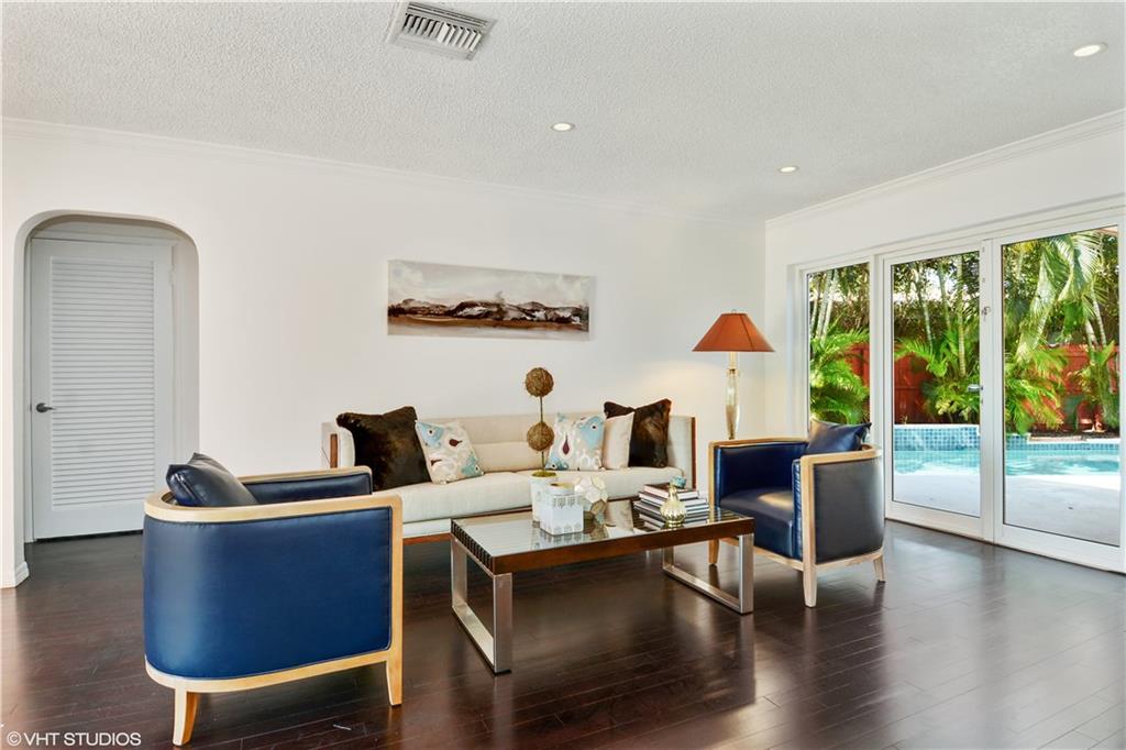 Lowest priced 3/2 with a pool in Coral Ridge. Nicely updated. East of Bayview. "Great Room" floor plan w/ room to expand. Beautiful pool and patio area. New wood floors. New ceramic tile baths, granite counters & seamless glass shower enclosure. New AC unit, H2O heater & electric panel. Newer white kitchen cabinets and appliances. Separate interior laundry room w/extra storage (not in the garage!) Some impact glass. 2CG. Plus Bayview Elementary! A perfect starter & family home. Best deal in Coral Ridge.