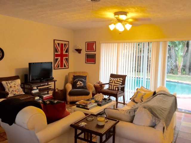 Great open floor plan with beautiful pool views located on one of the best streets in Imperial Point. Features include large eat-in kitchen, bonus office/guest room, plantation shutters, Mexican tile, huge fenced yard with lush tropical landscaping and p aver driveway. Close to shops, restaurants and minutes to I-95. Located in an A-rated school district.