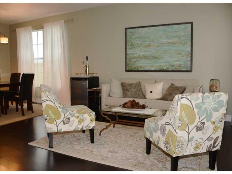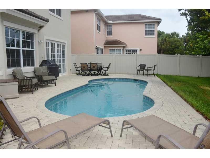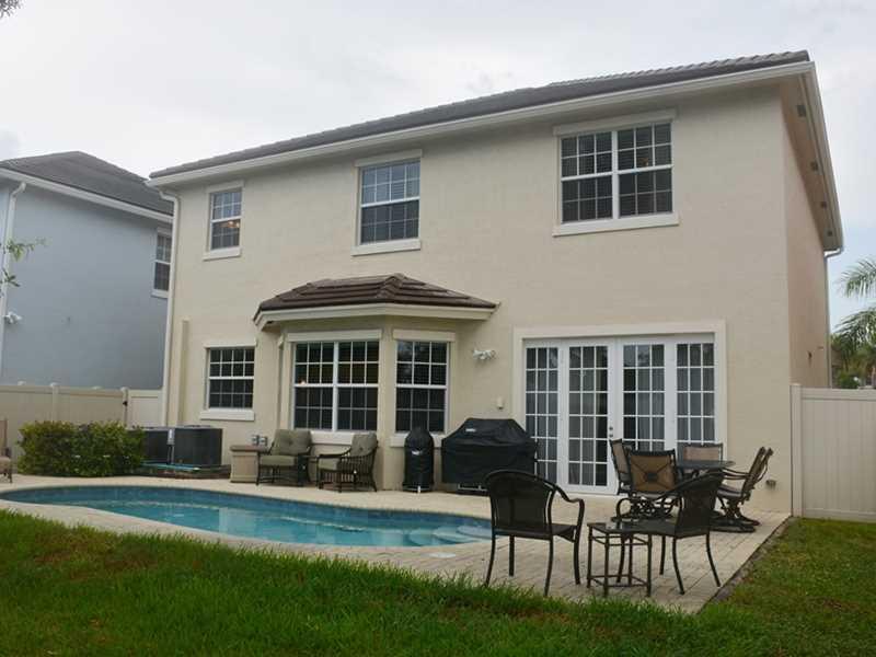 Elegant 2 story home on premium lot in private Georgian Oaks community built in 2012. Many upgrades incl free form pool, surround sound, recessed lights, upgraded granite & glass block backsplash, full glass shower enclosure, French doors & a 4th bedroom . Kitchen features an island, stainless appl & lots of cabinets. Other features incl upstairs laundry rm w/sink, wood flrs, 2 a/c units, 1/2 bath 1st fl, 9' ceilings, impact windows & large backyrd. Easy access to I95/airport/restaurants/beach & downtown.