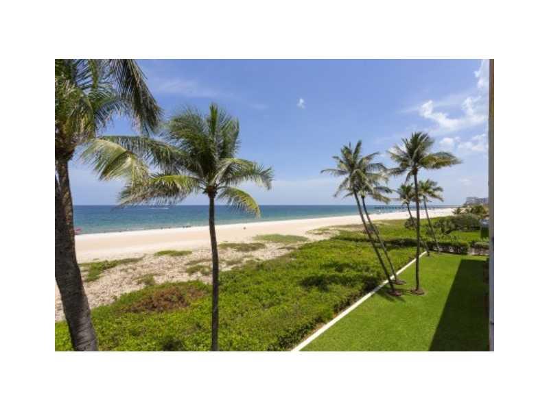 Two story townhouse on top 2 floors of a 4 story, 20 unit complex. Located directly on the beach. Magnificent ocean views, Balconies on each floor. Views of Pompano Pier to the south and Hillsboro Inlet to the north. Recently upgraded. Kitchen has g ranite countertops and stainless steel appliances. Two bedrooms with walk in closets, 2 1/2 baths, office/den, dining room and family room with custom built in wall units.