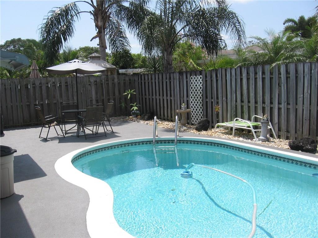 WHY NOT HAVE IT ALL, 3 BED 2 BATHS, HUGE SCREENED IN PATIO WITH MEXICAN TILE OVERLOOKING A FREE FORM POOL WITH A FENCED IN YARD FOR PRIVACY KITCHEN HAS NEW CABINETS NEW REF, NEW COUNTER TOPS OPEN AND BRIGHT WITH A PASS THRU WINDOW FOR THE PATIO, BEDROOMS HAVE LAMINATED WOOD FLOORING, CERAMIC TILE IN MAIN LIVING AREA, A GREAT HOME TO ENTERTAINING,