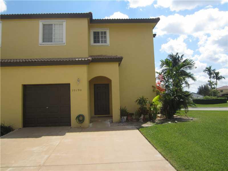 Just painted on the exterior, Fee simple townhome, 3 bedrooms 2 1/2 baths, garage community pool, within 1 block, gated community. The interior is well maintained, light and bright, convenient laundry area, open patio, custom painted, light and bright. Great for investor, no restriciton the first year of renting. Great location...near shopping and easy access to I 75 and the Florida Turnpike. This is a corner unit with lots of windows and has hurrican shutters.