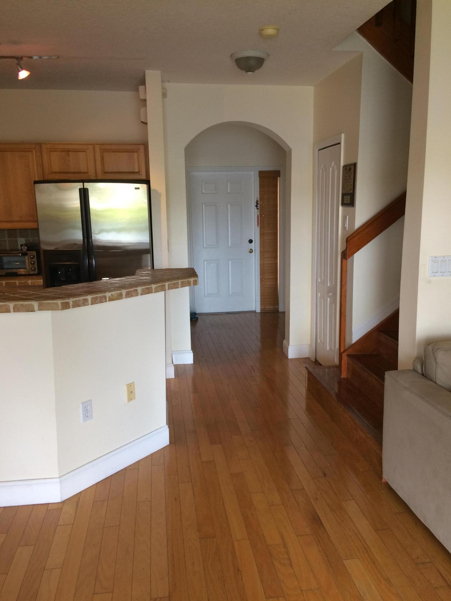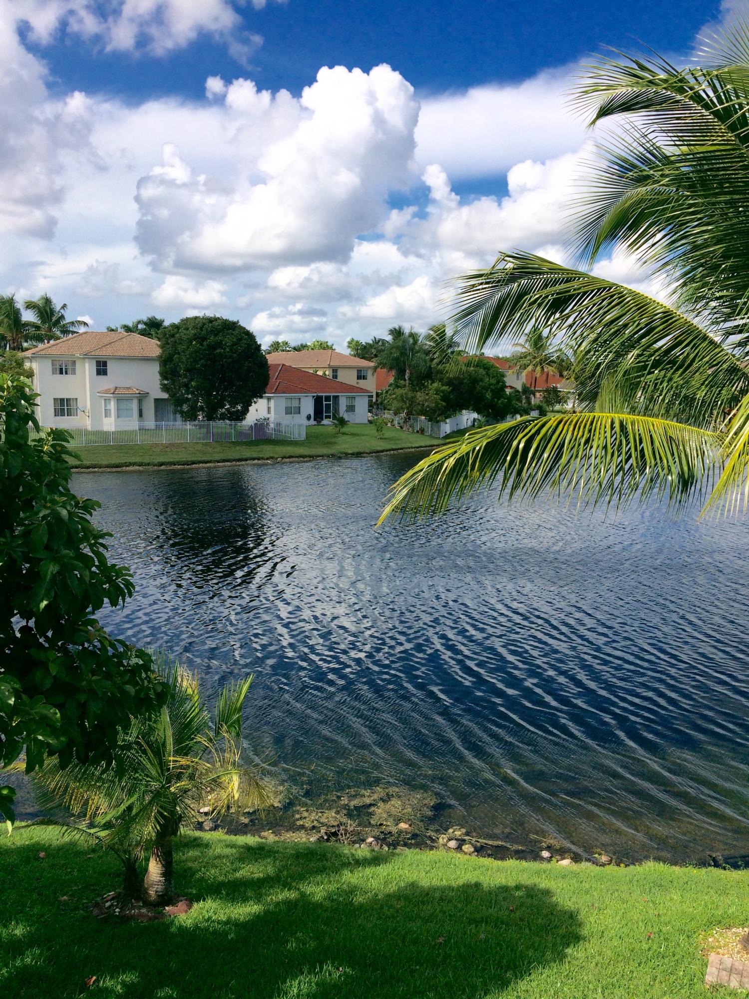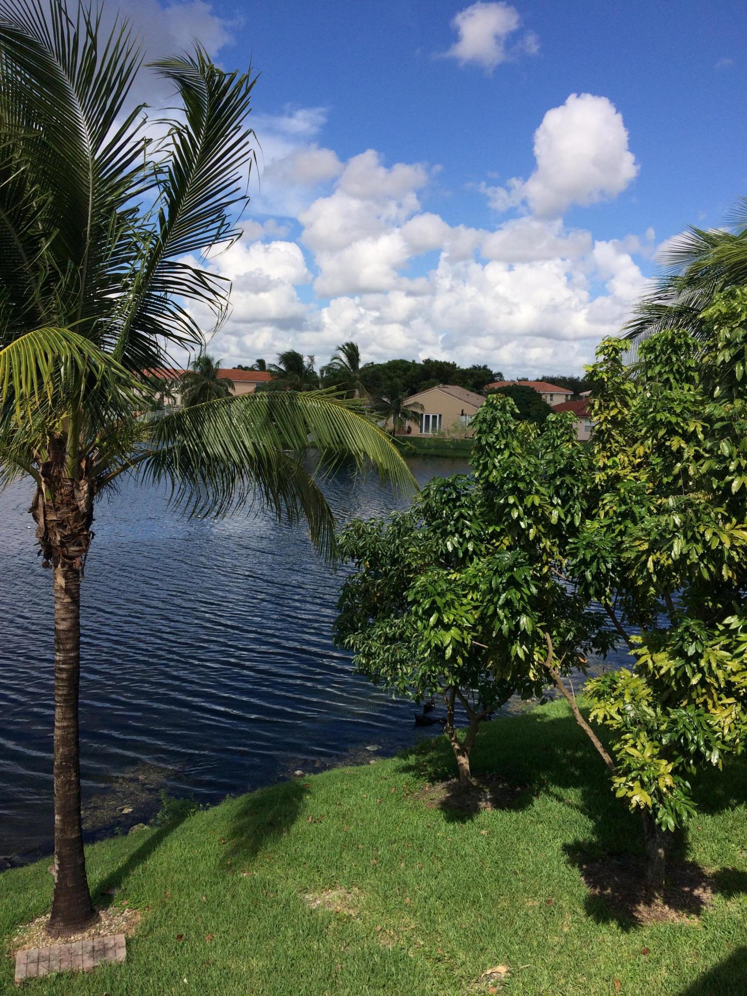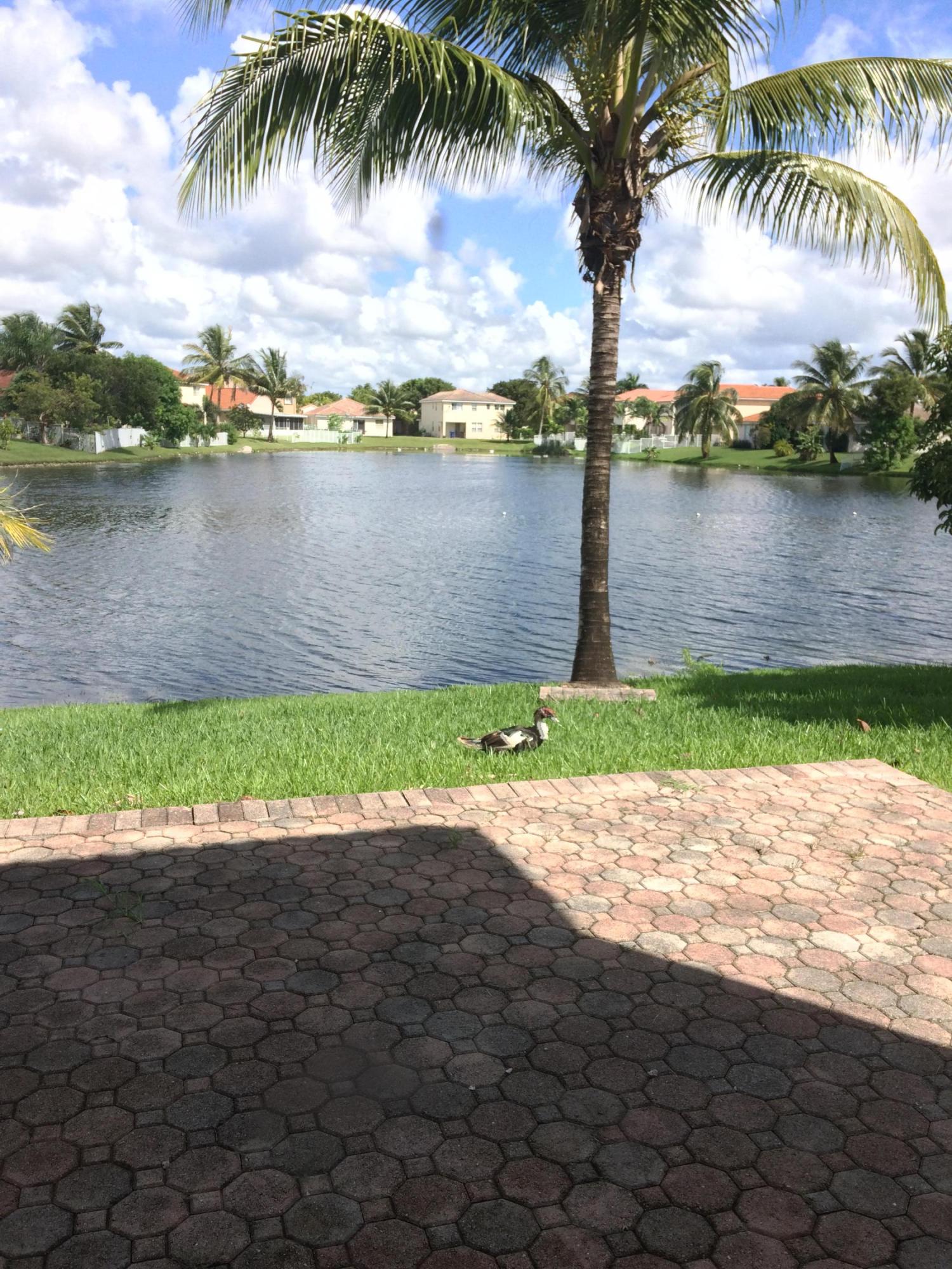 Beautiful waterfront 3 bedrooms + Loft Area, 2.5 bath, 1 Car Garage with a breathtaking lake view from a large brick paved patio, a private corner unit with lots of upgrades, all wood floors, enjoy the wonderful view from your own walk out master bedroom balcony, stn stl appliances, full size washer / dryer, 2 car driveway, guest parking, all units exteriors repainted, beautiful community pool, kids playground area, great location with easy access to I-75, Turnpike, shopping, schools, parks, gym and night life. Location Location Location this property is in a prime location it will not last, call today make an appointment to preview this wonderful property. Recently 03-24-2017 installed new upgraded wood floors downstairs.