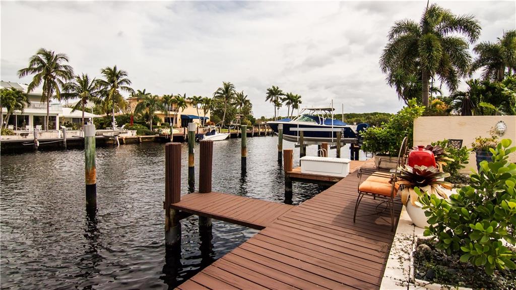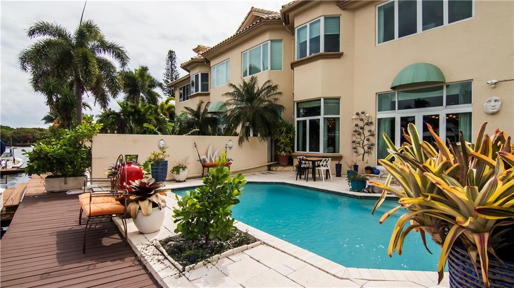 This fabulous townhome will sell quickly! In popular Coral Ridge, 2 private boat docks on deep canal just a few houses from Intracoastal-no fixed bridges to ocean. Enjoy private back patio w/pool. Enter home thru charming courtyard leading to glass entry doors. Extra wide Chicago brick drive & 2 car gar provides plenty of parking. Interior has open floorplan, 10' ceilings, tall windows,lots of natural light, marble floors down/genuine wood floors up, many spectacular extras w/abundance of old world charm!