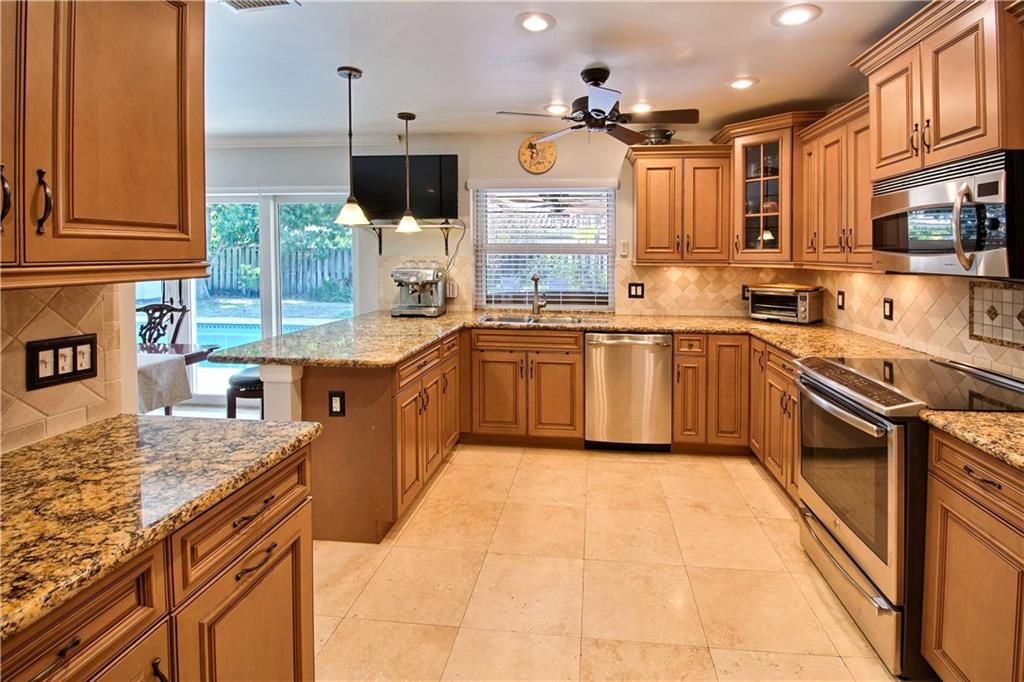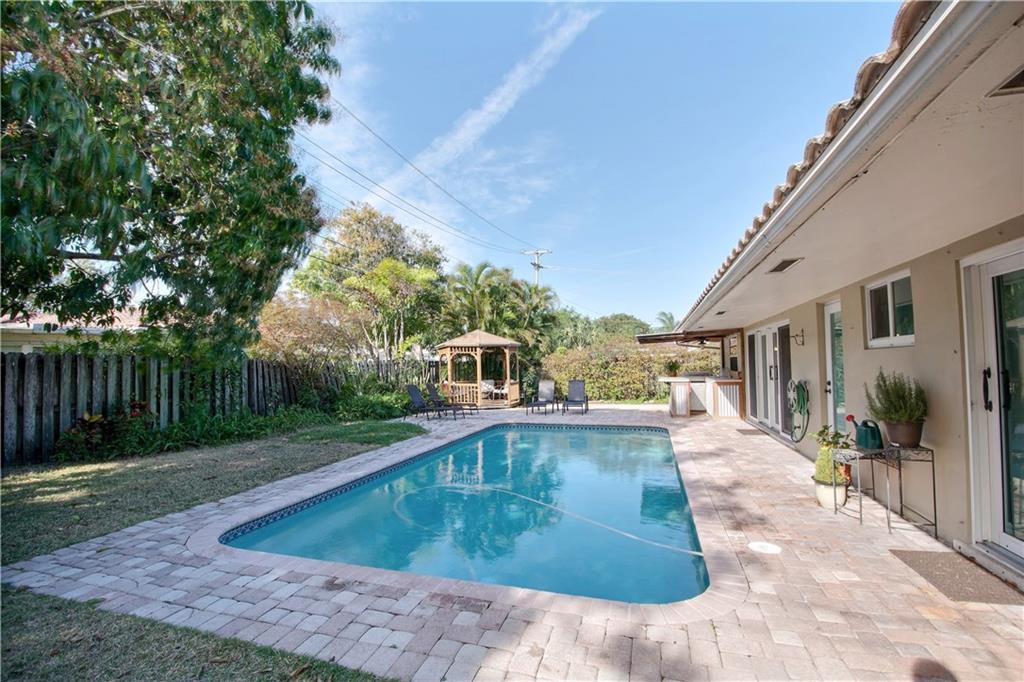 Beautifully updated 3bed/3full bath home in Imperial Point neighborhood. Featuring an open kitchen with quality wood cabinetry, S/S appliances, and granite countertops, open to the dining and living area. Tile and wood flooring throughout, hurricane impact windows, doors, plus a pavered circular driveway. The gazebo, outdoor bar, and cabana bath by the inviting pool make this an entertainer's paradise. Wonderful curb appeal w/covered entry. Trees and lush greenery surround this home. Make it your own!!