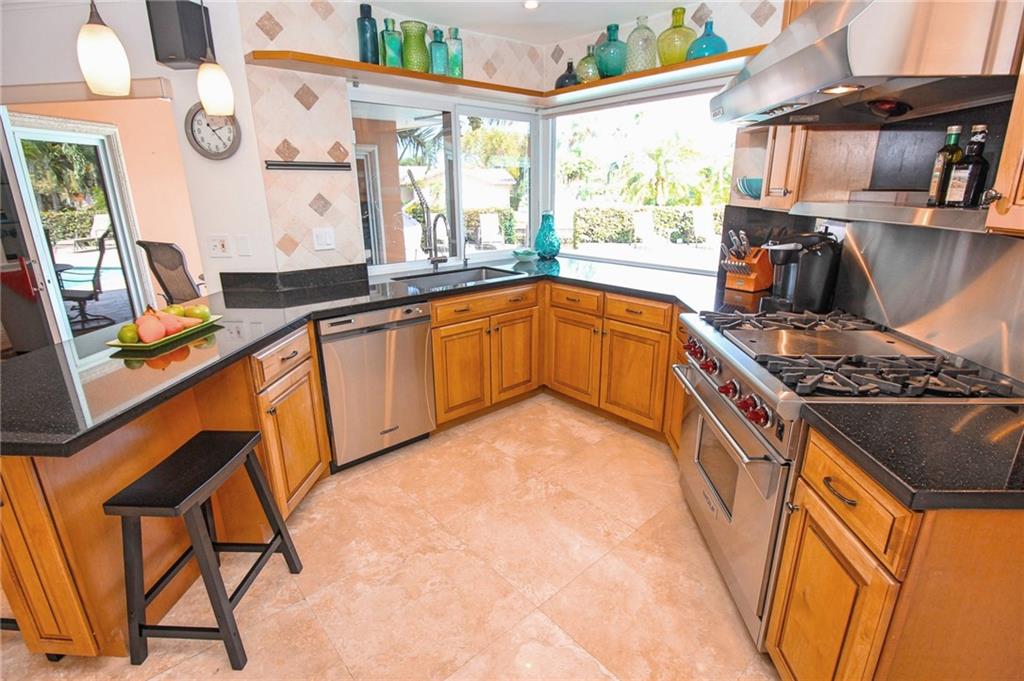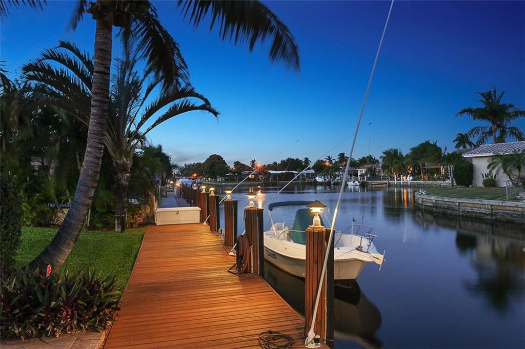 Tropical paradise & true boaters delight less than 1 mile from the Intracoastal waterway, this 3bed/2bath waterfront pool home boast tasteful finishes and upgrades! On the inside, marble floors throughout, impact windows and doors,SS appliances and Wolf Gas range, stone countertops, beautiful baths, tankless water heater, built-in speakers. On the outside,Impact garage door, paved drive & pool deck, 80ft dock, automated pool equipment, pool heater & breathtaking mature landscaping!Furniture Negotiable!