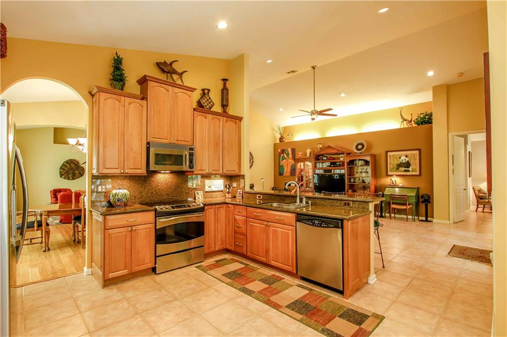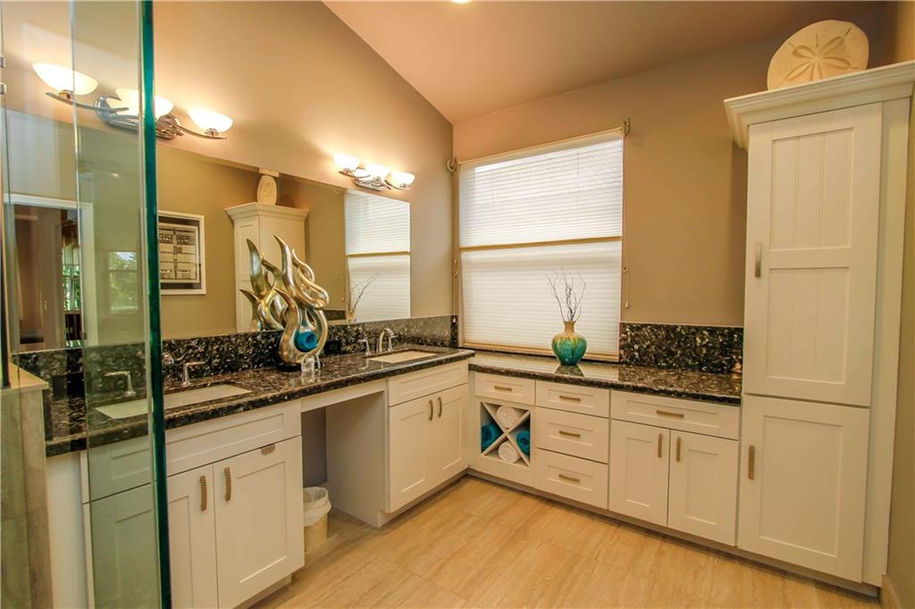 Gorgeous lake front home in a guard gated community. Spectacular one story home with remodeled gourmet kitchen with real wood cabinetry, granite countertops, and ss appliances. Master has great lake views, two large walk in closets, and tile floors. Master bath is completely remodeled with a large frameless shower, granite counter tops, new cabinetry, lighting etc. Second bath also remodeled with new cabinetry, glass sink bowl, faucet, etc. Lush landscaping, accordion shutters and so much more!