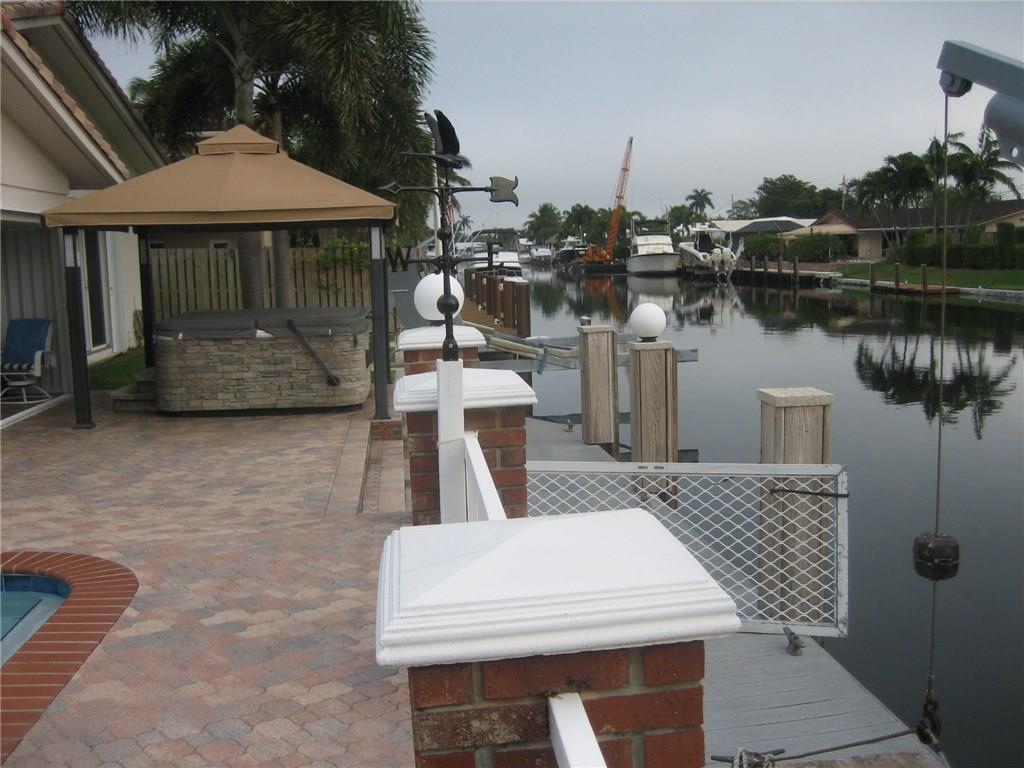 Newer Constr., Vaulted Ceilings-Open concept split floor plan, 80' Wf, 1 bridge to ICW, 14,000lb Boat Lift, Hot Tub w/lighted 10x10 Gazebo, lg Family Rm w/built-ins + 50" TV, Custom Kitchen- corrian counters, SS appliances, Tankless HWH, Plantation Shutters throughout, 50' dock, Newer Washer-Dryer, 15x30 Pool, Tile Floors in living area, hardwood floors in bedrooms, Oversized 2 Car Garage w/door opener + battery backup,Pavers in front and back patio,Water Softner,all closets organize-fenced yard-Much More