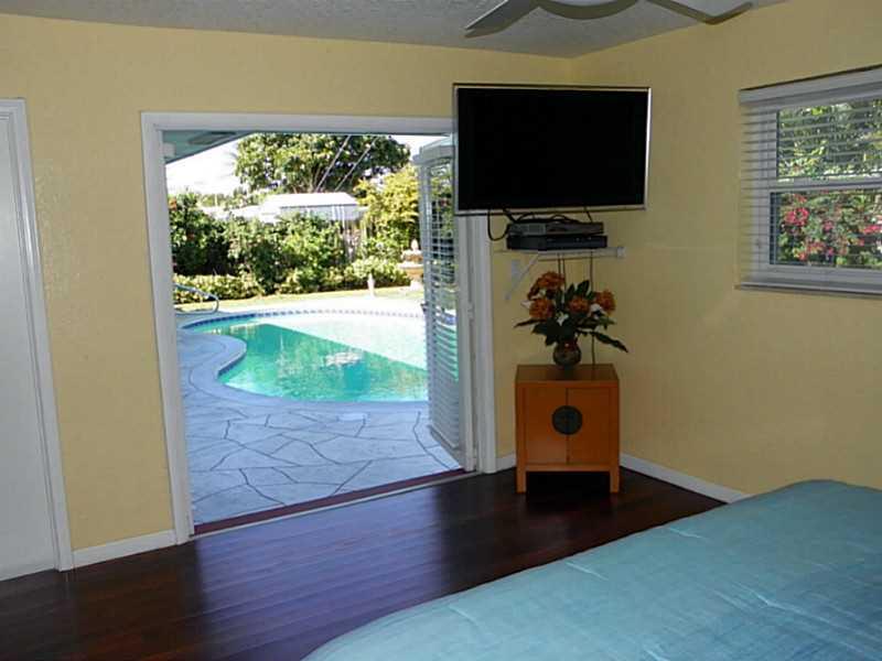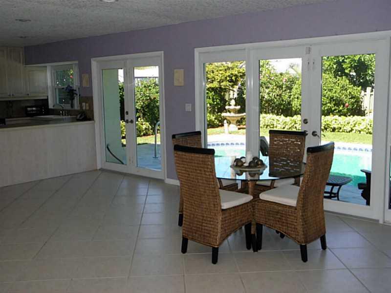 Impeccable Imperial Point pool home. Updated kitchen and bathrooms. Tile flooring throughout the living area and real hard wood in the bedrooms. Knockdown walls & ceilings, recessed lighting. French doors off the living room and master leading to a hea ted pool and lush tropical landscaping. Impact windows and doors throughout the home. The 3rd bedroom is currently being used as a den. The house has a laundry room off the kitchen and oversized garage with plenty of storage.