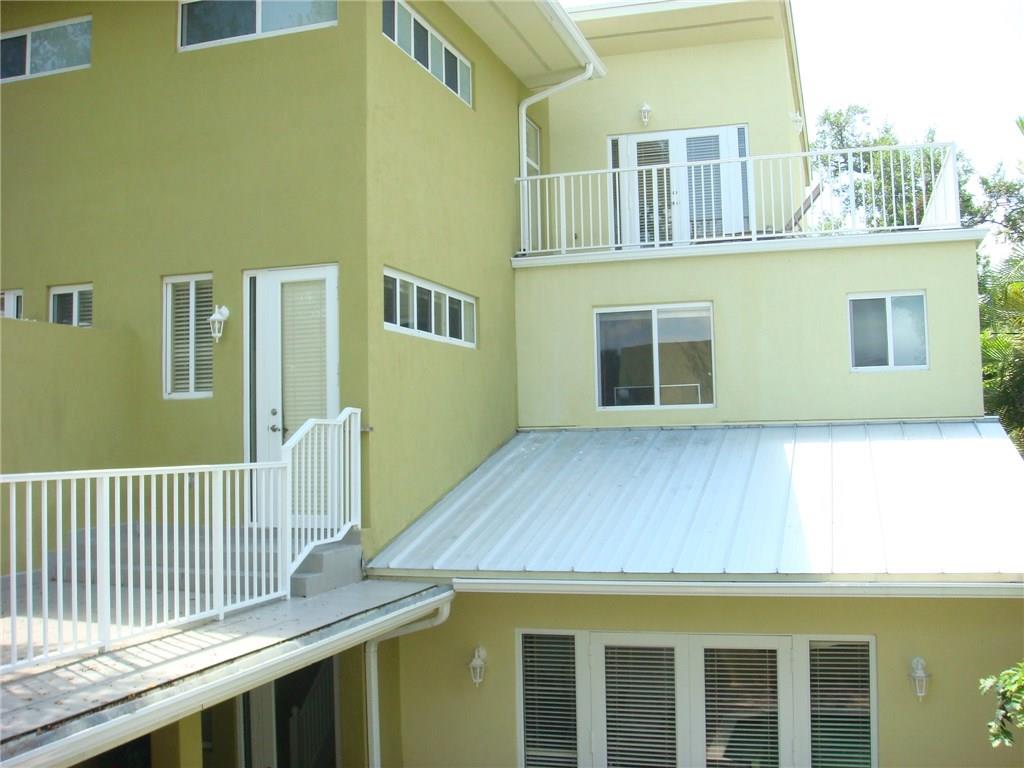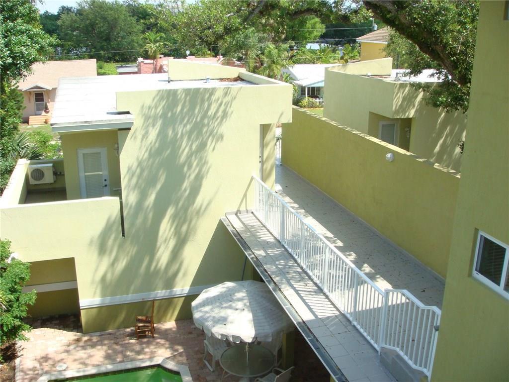 Beautiful very large stylish newer Key West style townhome with metal roof, 2 car garage, private pool & paver courtyard patio. Feels like a single family home. Fee simple. No HOA. All impact glass. 3/3.5 main house, 1/1 over garage w/private entrance. Lots of storage, large room sizes. Living areas & kitchen conveniently on 1st floor. Master suite all on 3rd level. Guest rooms on 2nd level each w/ensuite bath. Space allocated for elevator. GREAT SPACE.Lovely residential neighborhood close to everything.