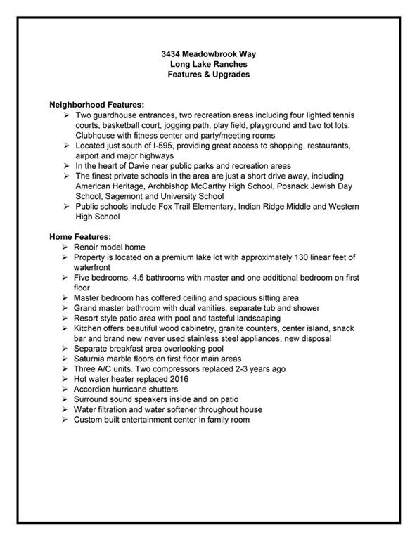 TAKE A WALK THROUGH THIS HOME BY CHECKING OUT THE 3D VIRTUAL TOUR.COME HOME TO THIS STUNNING 5+DEN+LOFT/4.5BATH/3CR W/SPECTACULAR LARGE LAKE VIEW IN LONG LAKE RANCHES, DAVIE. DRAMATIC FLOOR PLAN W/SOARING CEILINGS, MASTER BD+1BD DOWNSTRS, GRAND SWEEPING STAIRCASE TO UPPER BRS & GAME RM/LOFT/BALCONY. LARGE 35K SF LOT W/ PLENTY OF ROOM FOR ENTERTAINMENT.ENJOY THE OUTSTANDING AMENTIES INCLUDING TENNIS & BASKETBALL COURTS, JOGGING PATH, TOT LOTS, PLAYGROUND, RECREATIONAL AREAS & CLUBHOUSE WITH FITNESS CENTER.