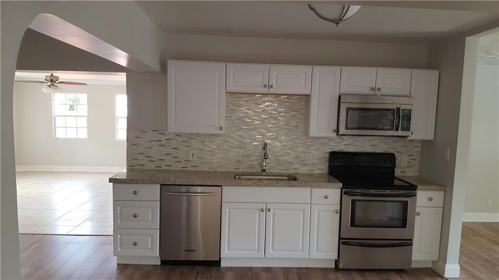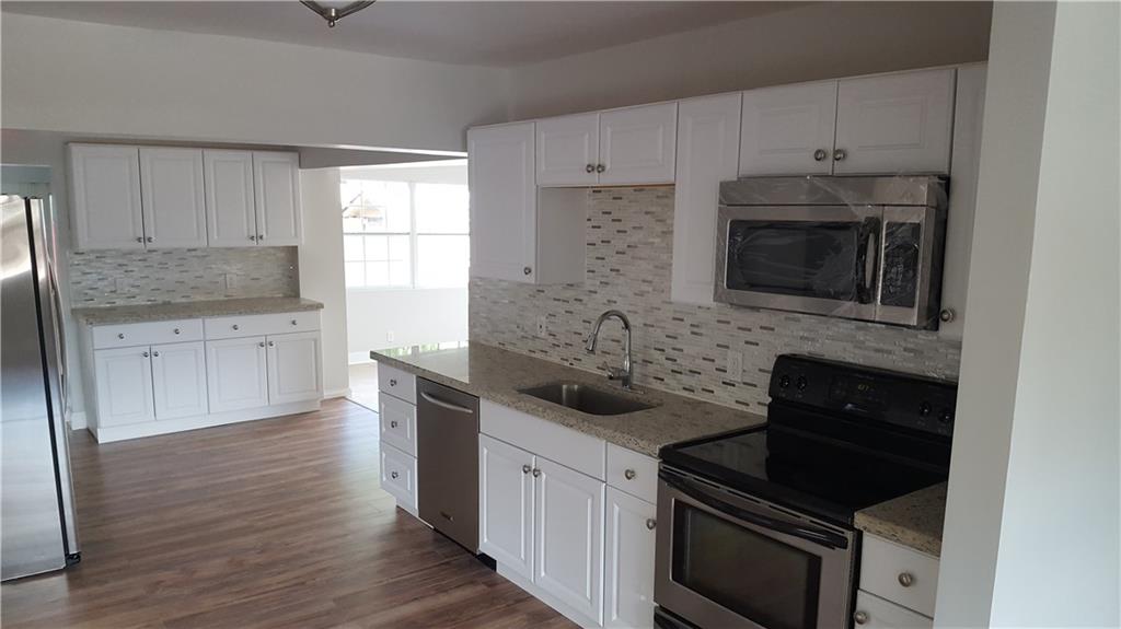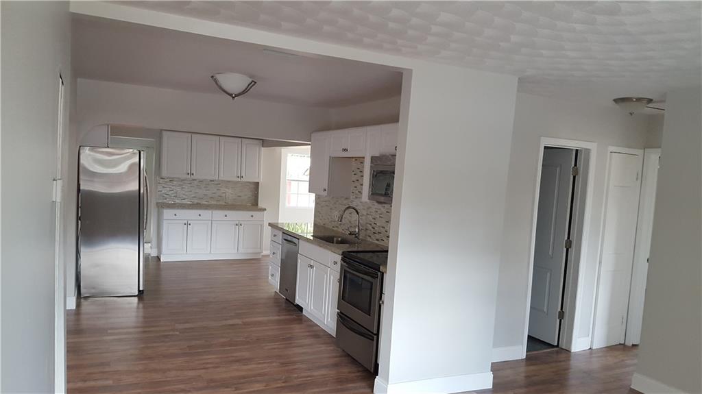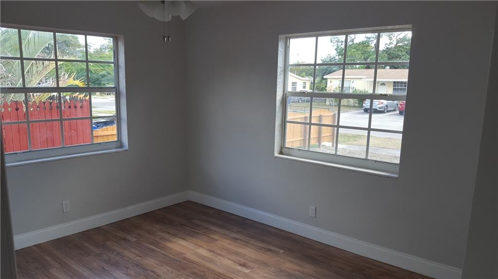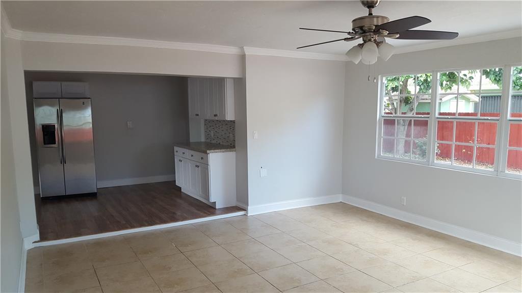 Renovated 4 bed 2 bath Hollywood home. Beautiful brand new large kitchen that opens up to the front living room, dining room & large family room. Master bedroom has private bath w/ large walk-In closet & custom shelving. New wood laminate flooring throughout with the exception of the bathrooms both are tile. New windows, New roof with permit, new A/C and updated electric, separate laundry/utility room that leads to the large backyard complete with a storage shed with electric.