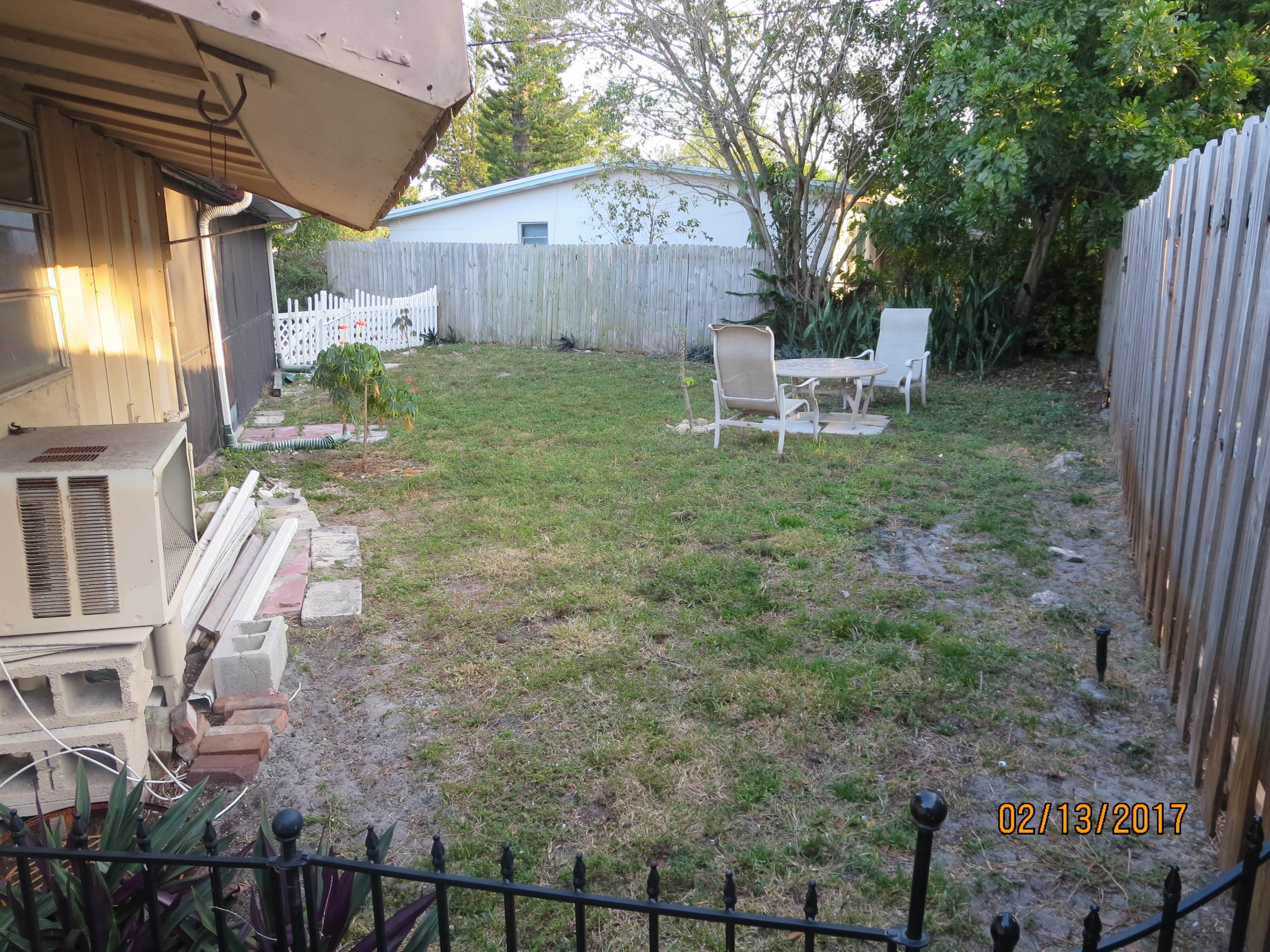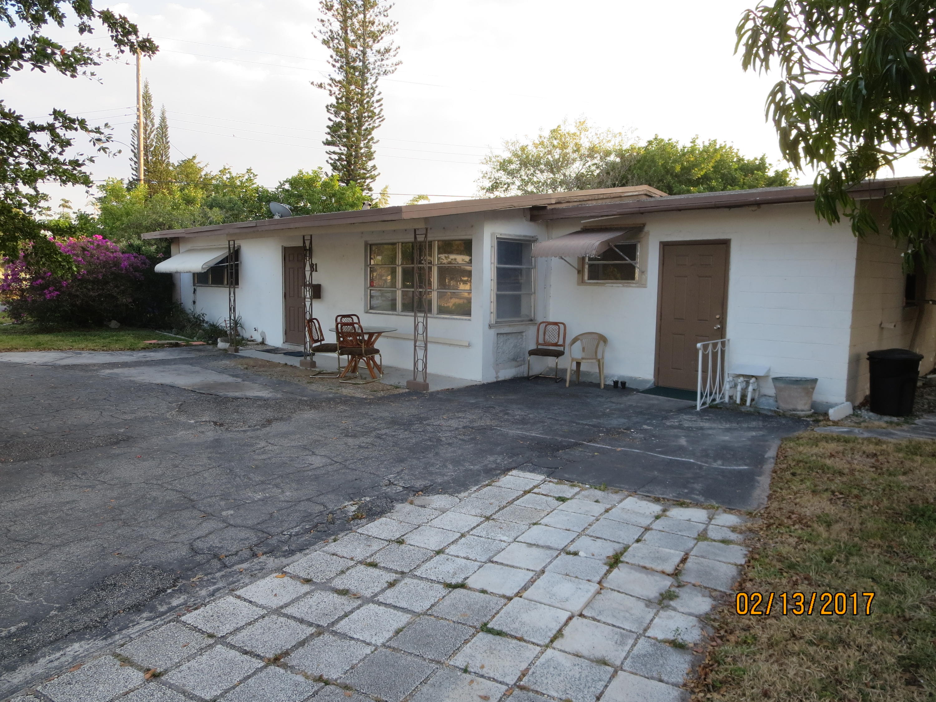 Big corner lot home with a large circular driveway! Three bedroom and one bathroom on one side with an attached efficiency on the other side. The efficiency is tenant occupied month to month and is prepared to vacate to property once sold. Original terrazzo floors throughout. This property has ton of potential and could be the perfect investment as the main house rents for $1,300 to $1,500 and the efficiency is currently rented for $800 a month.