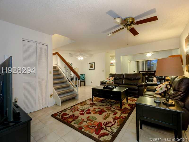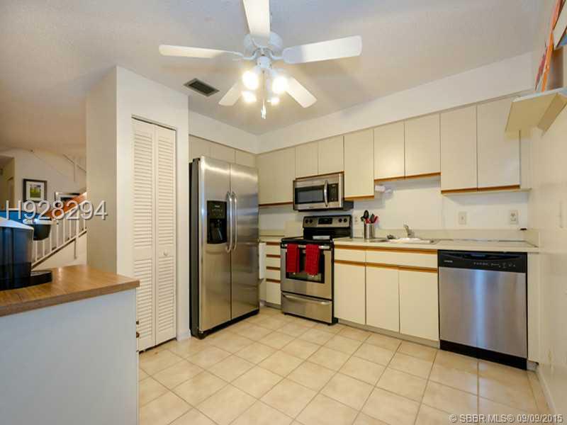 Spacious large tree preserve area & canal is the view from this private corner unit. Two original patios converted into additional interior room for office or den (so unit is larger than tax roll indicates). All flooring is tile or wood like. Stainless st eel Kitchen appliances have been recently updated.Has full three bedrooms, two bedrooms upstairs, one bedroom and a full bath downstairs. Washer/dryer in garage. Purchase or Lease/Option opportunity ($2,100 mo rent). Pets & kids welcome here. A rare find!