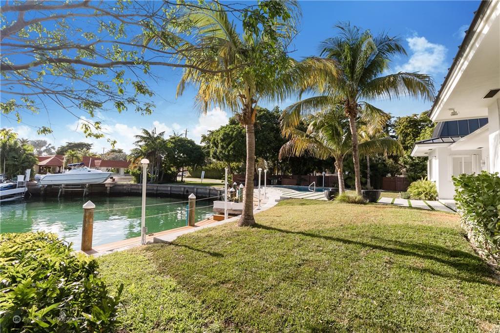 Beautiful Modern, Totally Remodeled 3772 LA. Waterfront Home on a large 12,000sqft corner lot adjacent to a green area. Located on luxurious Police Gated Sans Souci Estates. Resort like deck Pool area with sandy tropical Water views and 100ft dockage on a deep wide canal, no fixed bridges to open Ocean at just 10 minutes Equal Housing Opportunity.
