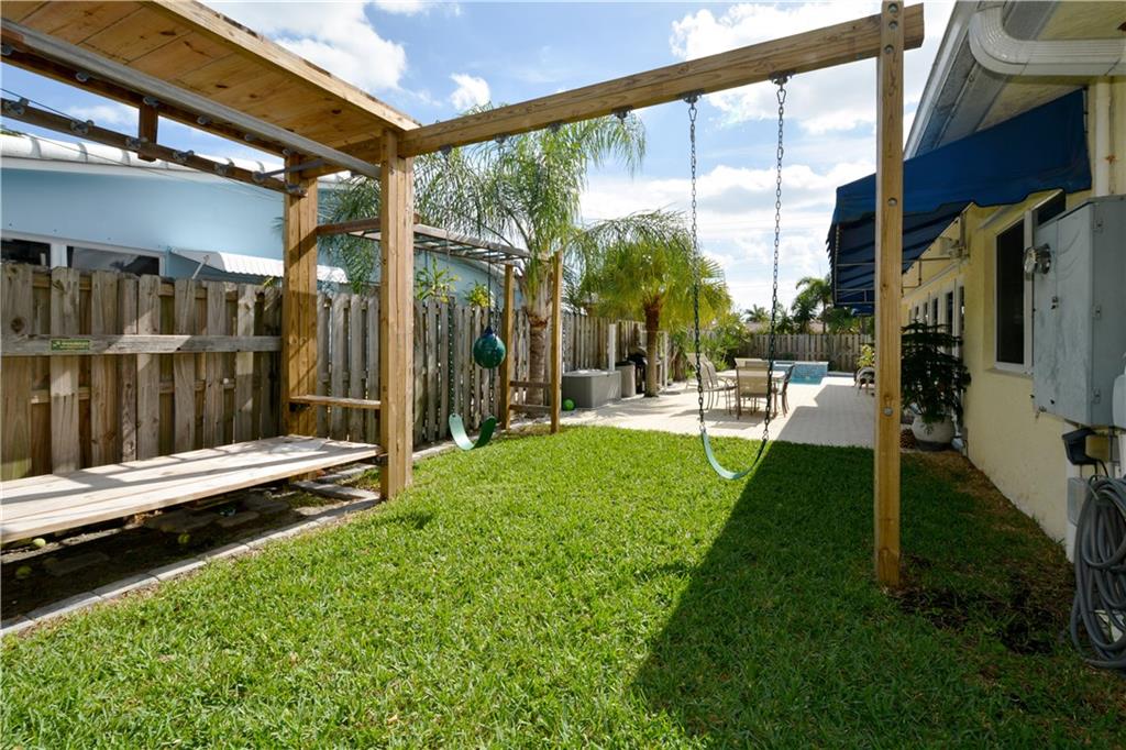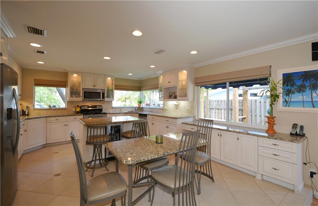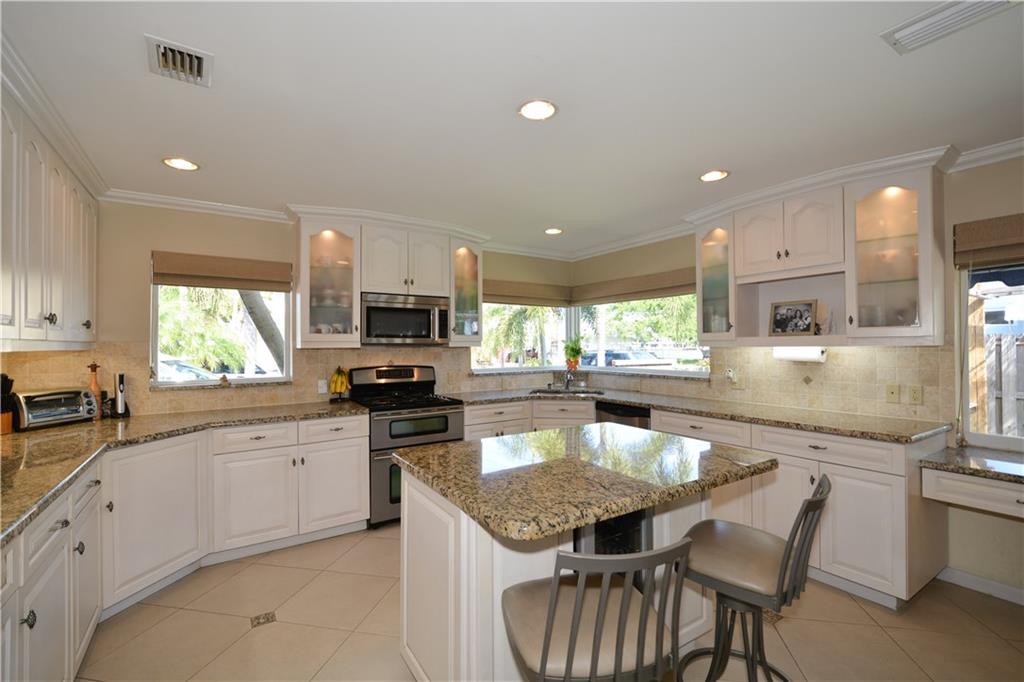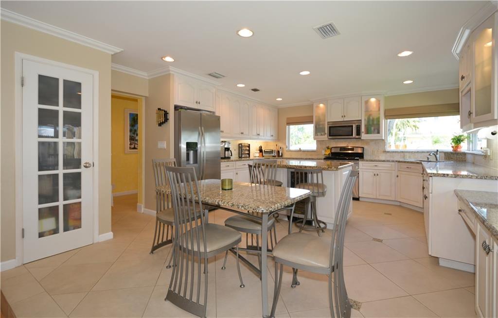 Perfectly renovated thoughout. Open & bright! Lg eat-in chef kitchen open to huge family rm with French doors for morning light & access to the heated pool/Jacuzzi, private fenced in patio area. PLUS U R 1 house from the culdesac & Intracoastal park - unobstructed views of the waterway from kitchen window & front porch! No neighbors behind house! Lg dining rm & wet bar, office. Curb appeal, pavers & location! Possibility of the dry lot next door bordering the Intracoastal Park for sale as well! Ask agent